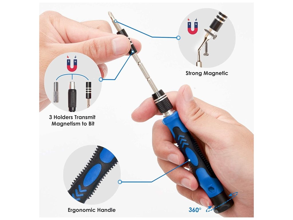 Tento magnetický set obsahuje širokú škálu bitov pre opravu PC, telefónov, tabletov a ďalšej elektroniky.