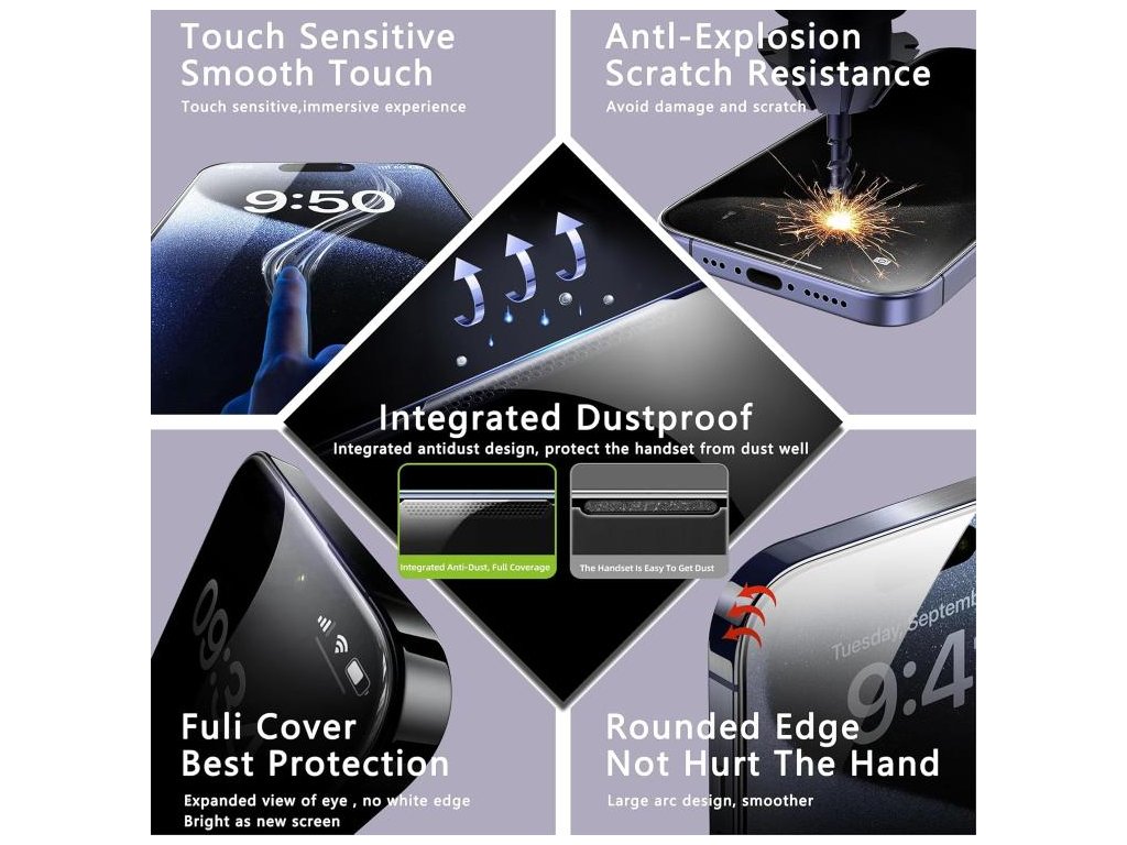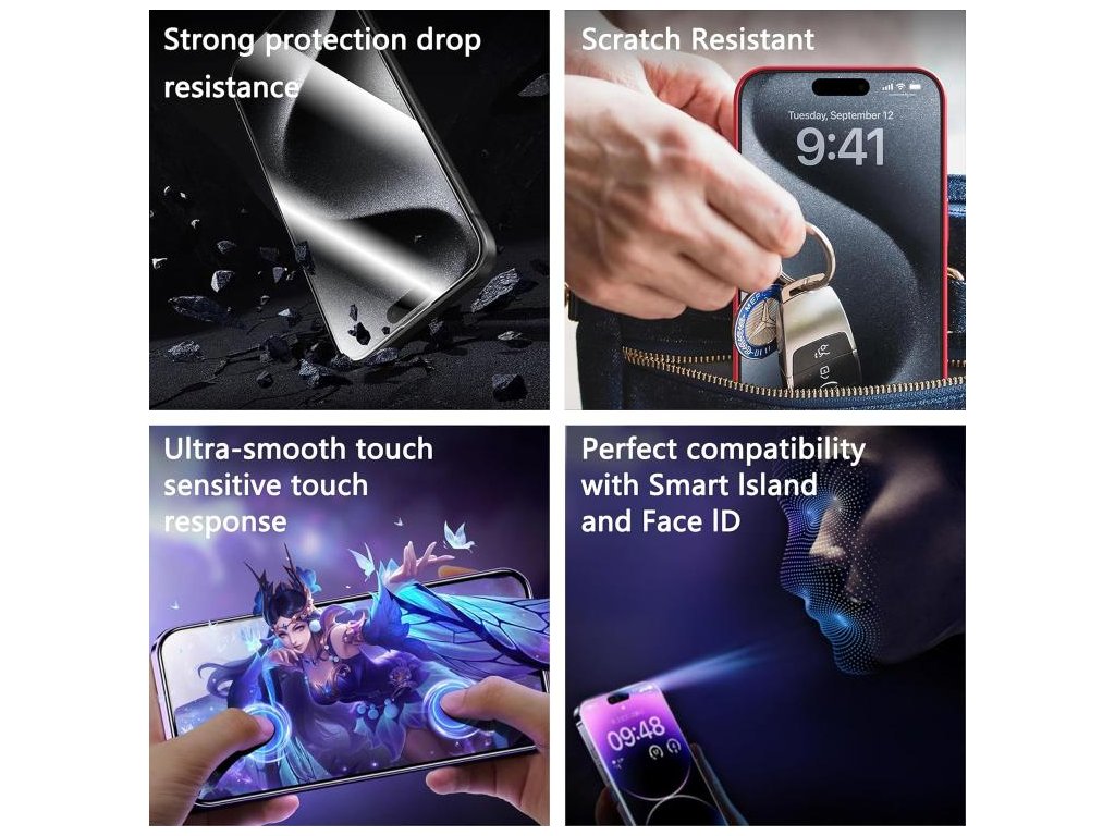 Anti-static úprava znižuje zachytávanie prachu počas aplikácie a HD priehľadnosť zachováva ostrý obraz aj plnú citlivosť dotyku.