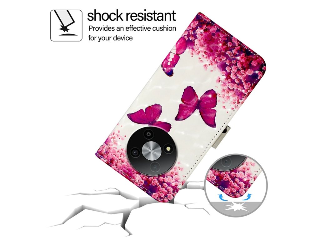3D Puzdro ZTE Blade A73 5G s motýľmi a kvetmi ružovo-biele