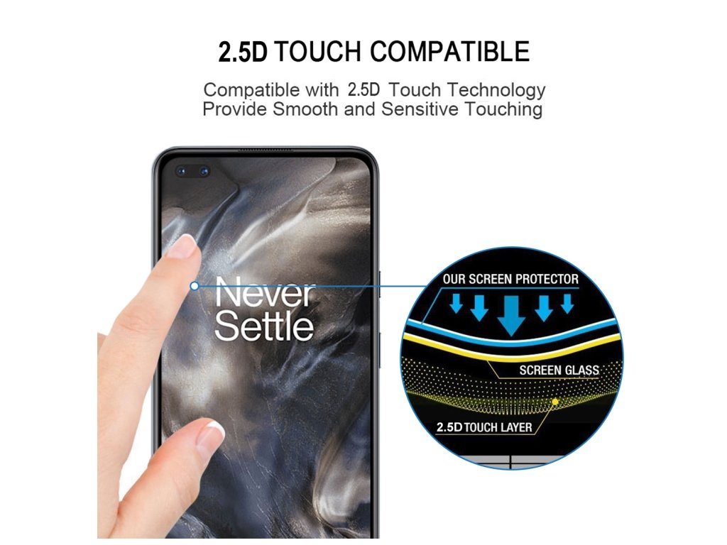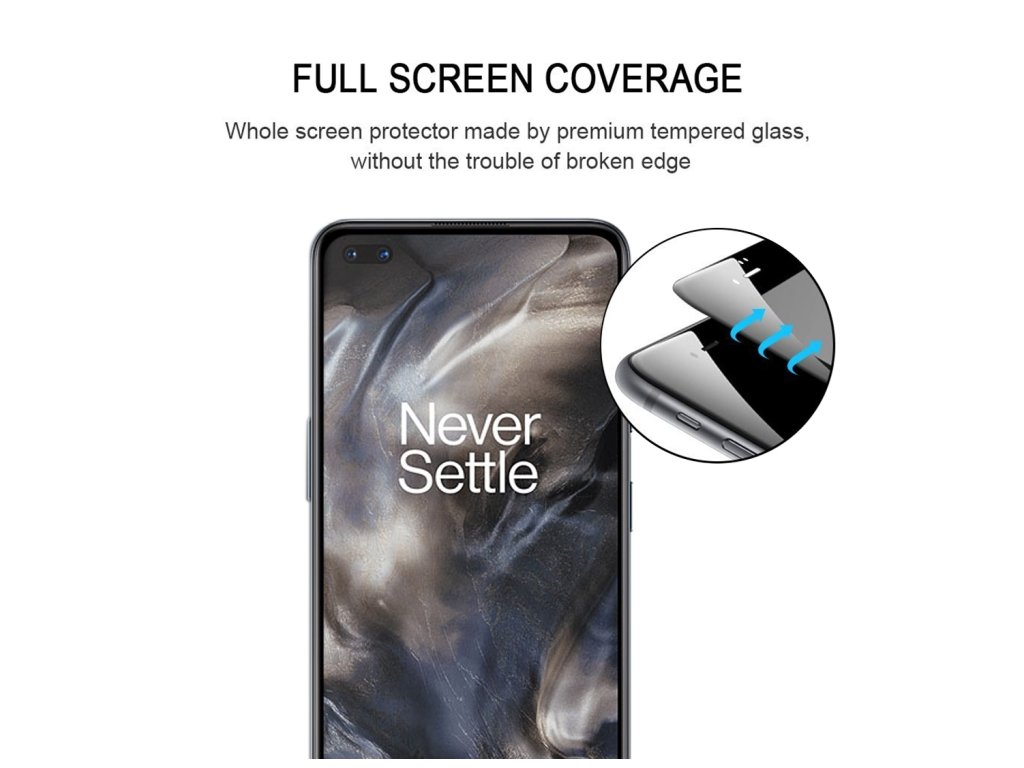 Okrem toho je naše sklo Full Screen, čo znamená, že pokrýva celú plochu displeja, vrátane zakrivených okrajov. To zabezpečuje, že váš telefón OnePlus Nord bude plne chránený až po okraj, a zároveň vám ponúka bezchybný dotykový zážitok bez akýchkoľvek interferencií.