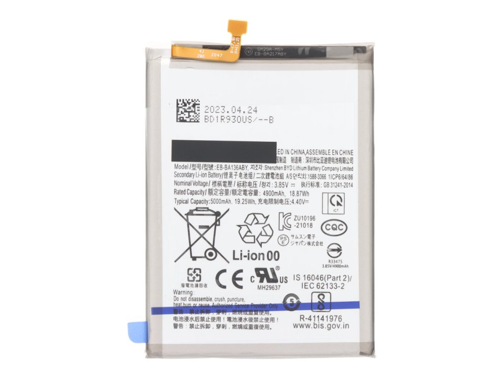 Kvalitná náhradná batéria EB-BA136ABY s kapacitou 5000mAh vhodná pre Samsung Galaxy A13 5G, M13 a M13 5G. Ideálna na výmenu za opotrebovanú batériu. OEM vyhotovenie zaručuje kompatibilitu a spoľahlivosť.
