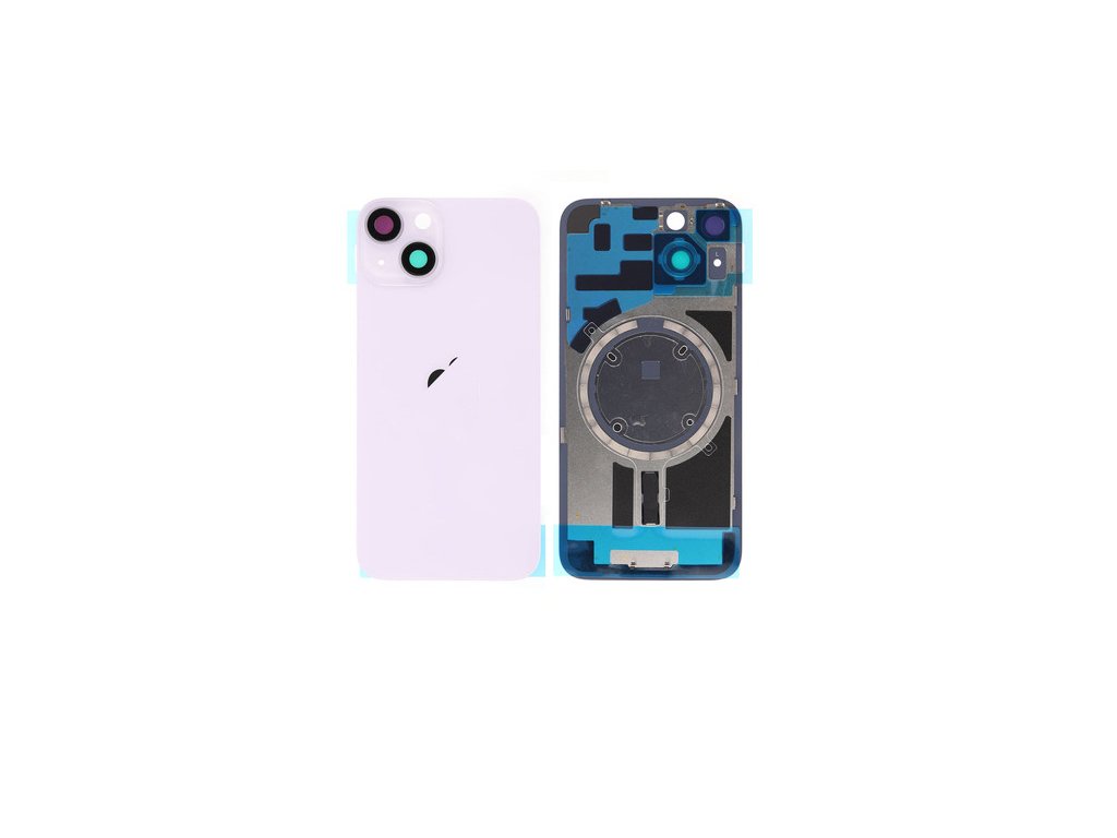 Náhradný batériový kryt pre iPhone 14 vo fialovej farbe s integrovaným sklíčkom kamery a vstavaným magnetickým krúžkom. Kvalitné spracovanie OEM zaručuje spoľahlivú kompatibilitu a vzhľad ako originál. Ideálne riešenie pri poškodení zadného krytu alebo kamery.