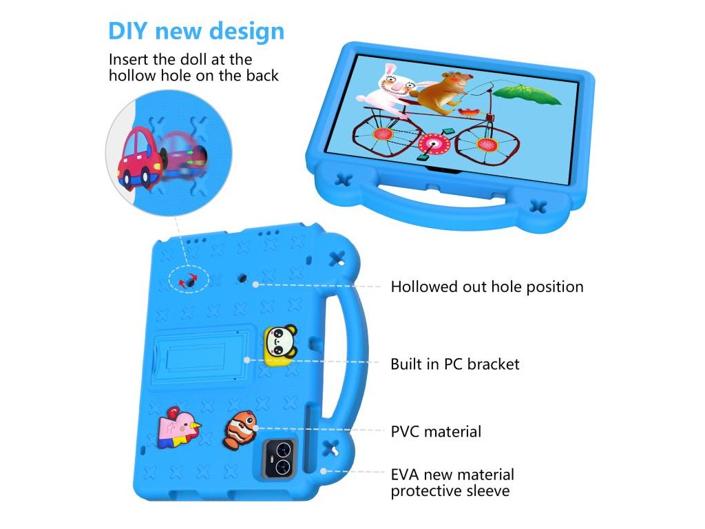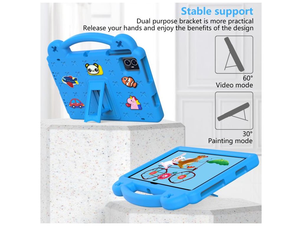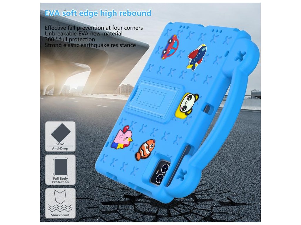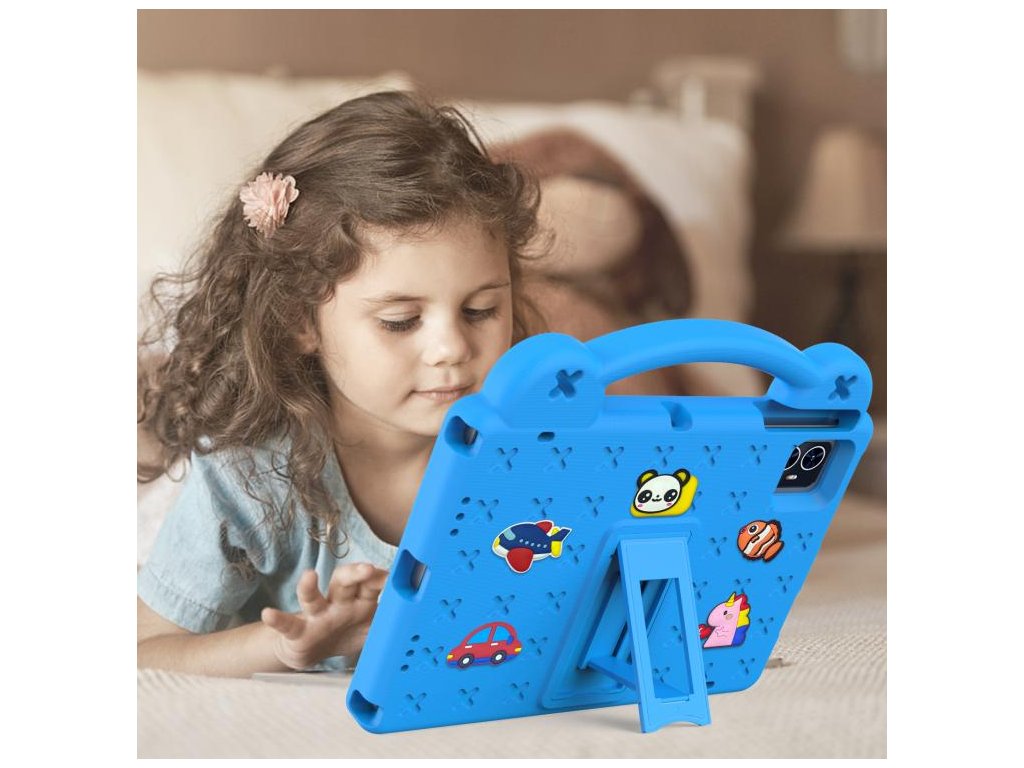 Veselá svetlomodrá farba poteší deti a zároveň poskytuje praktickú ochranu tabletu počas každodenného používania.