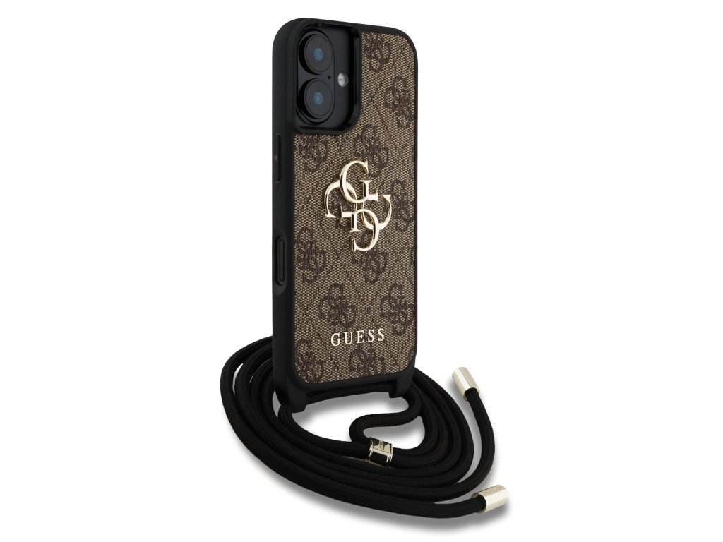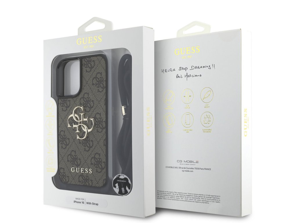 Guess PU 4G Metal Logo Crossbody Popruh Zadní Kryt pro iPhone 16 Brown