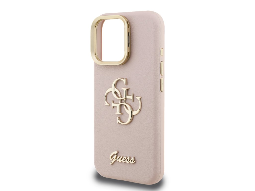 Guess PU Grained 4G Logo Stand Camera Frame Zadní Kryt pro iPhone 15 Pro Pink