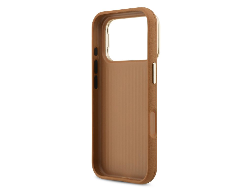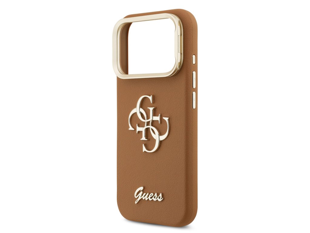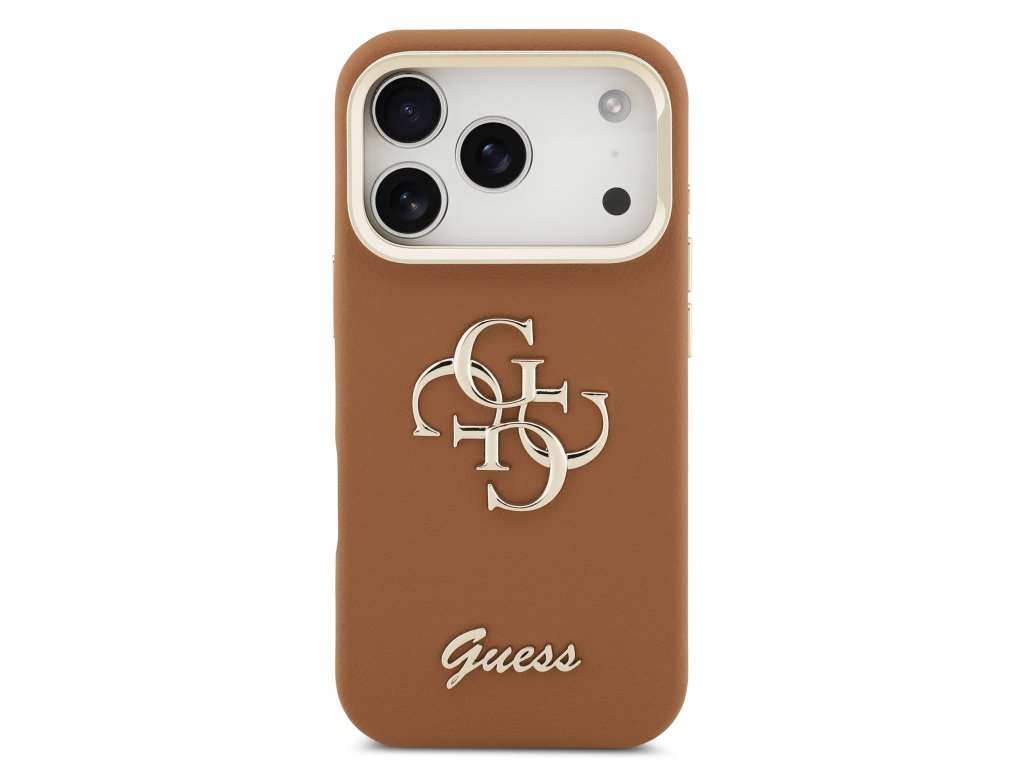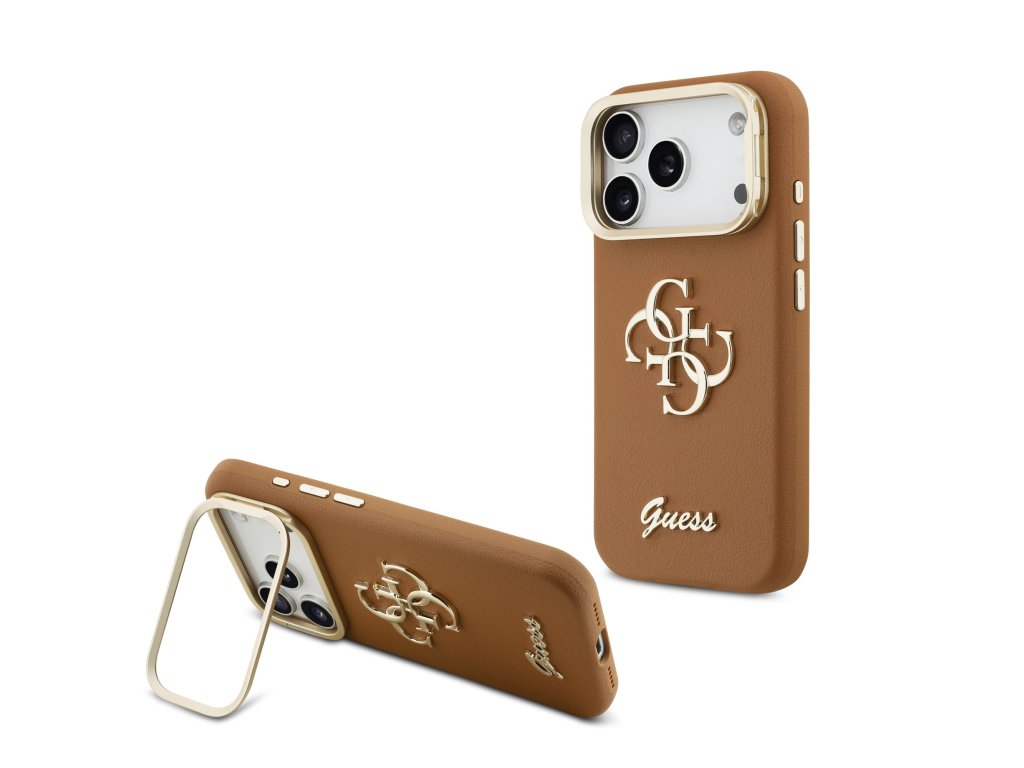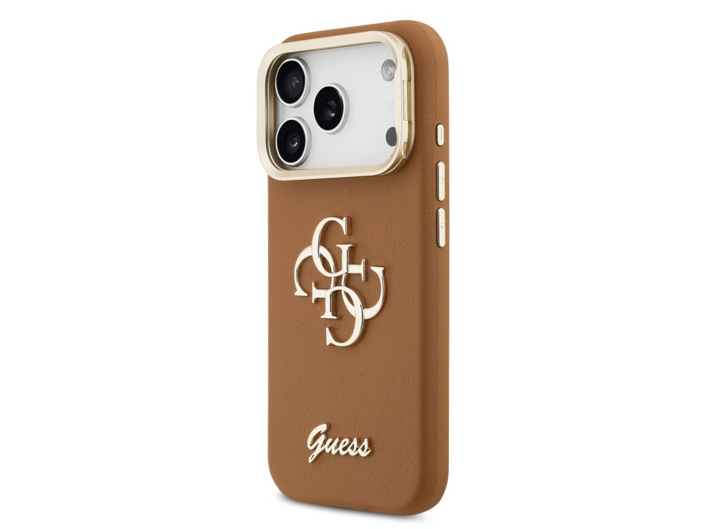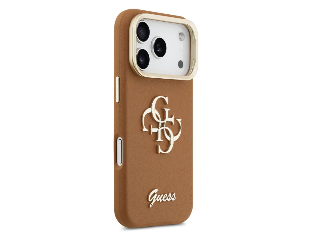 Guess PU Grained 4G Logo Stand Camera Frame Zadní Kryt pro iPhone 17 Pro Brown