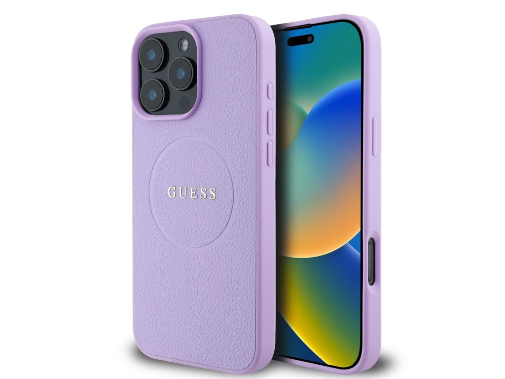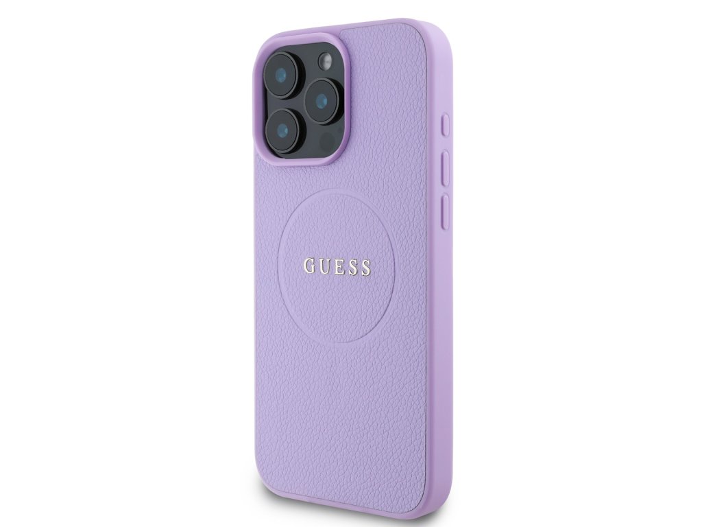 Guess PU Grained Classic Logo MagSafe Zadní Kryt pro iPhone 16 Pro Max Purple