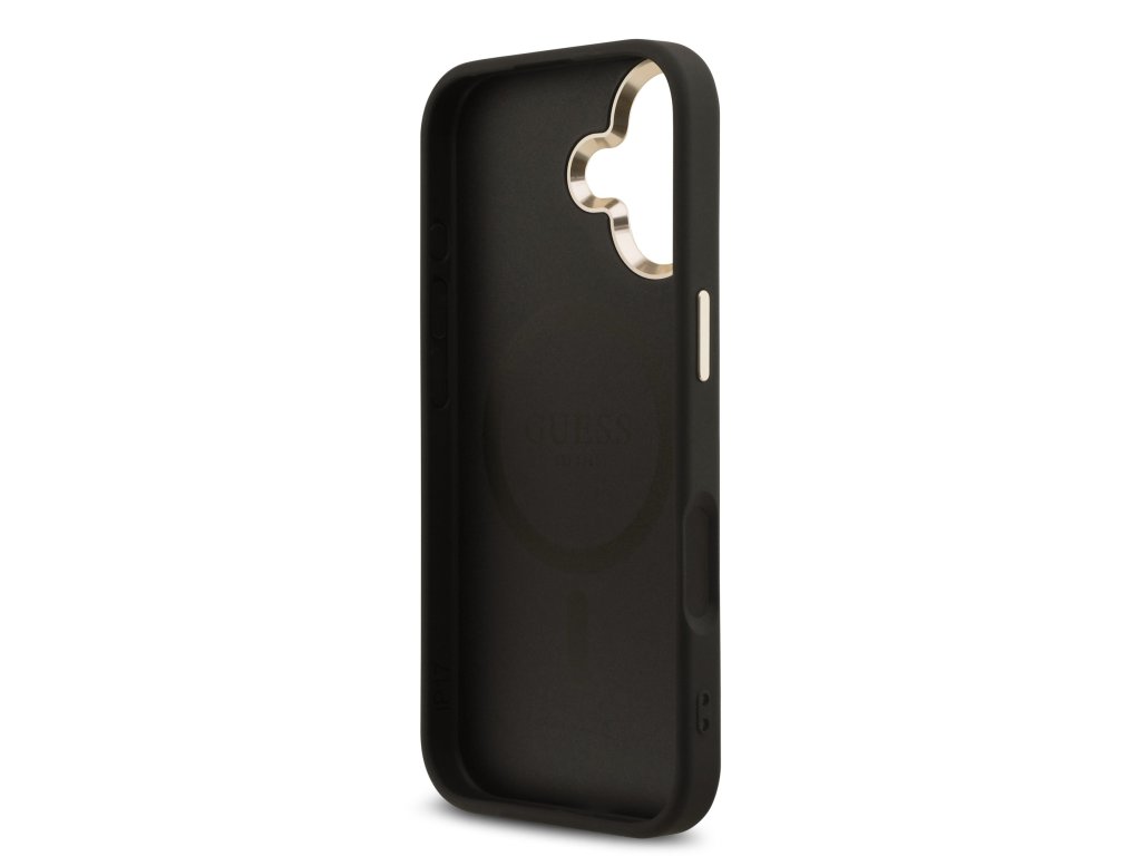 Guess PU Leather 4G Triangle Logo Gold Frame MagSafe Zadní Kryt pro iPhone 17 Black
