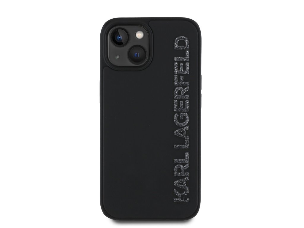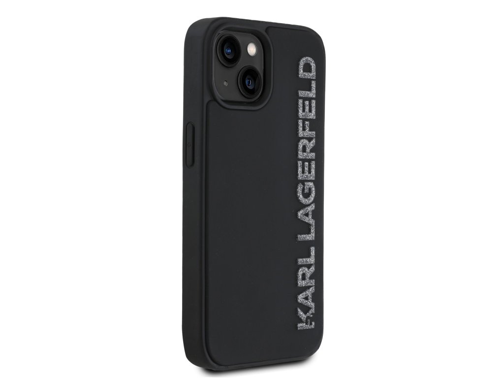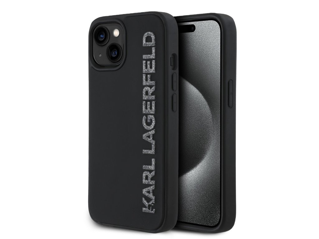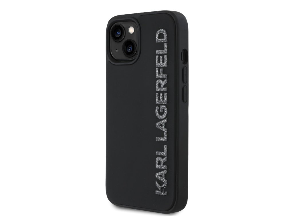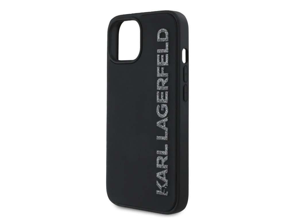 Karl Lagerfeld 3D Rubber Glitter Logo Zadní Kryt pro iPhone 15 Black