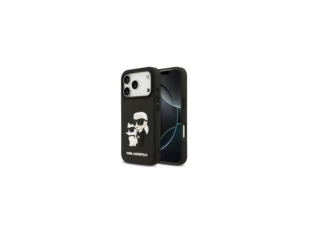 Dodaj svojmu telefónu iPhonu 17 Pro luxusný štýl s originálnym krytom Karl Lagerfeld 3D Rubber Karl and Choupette v čiernej farbe.
