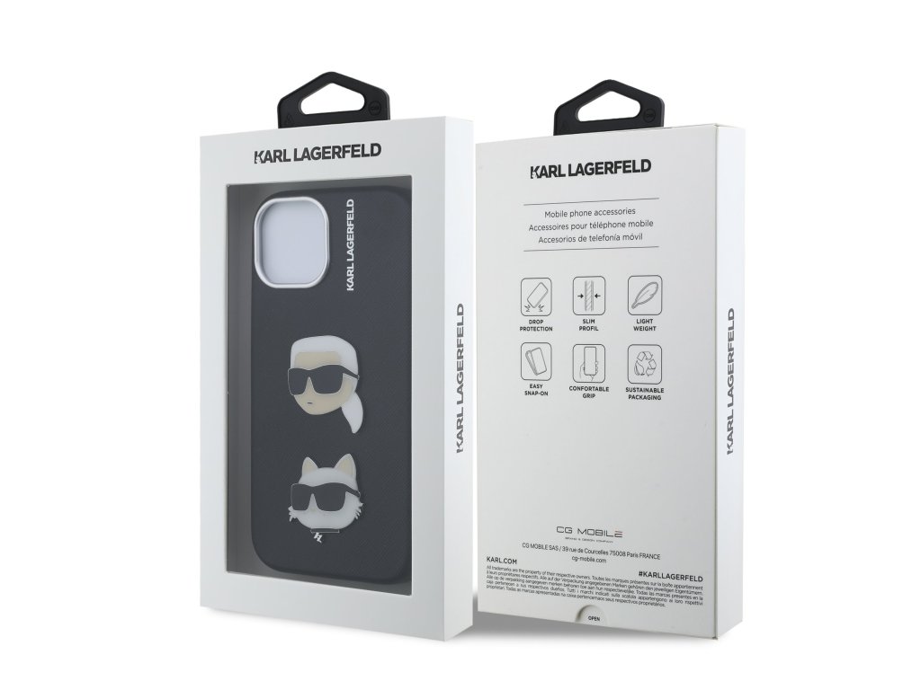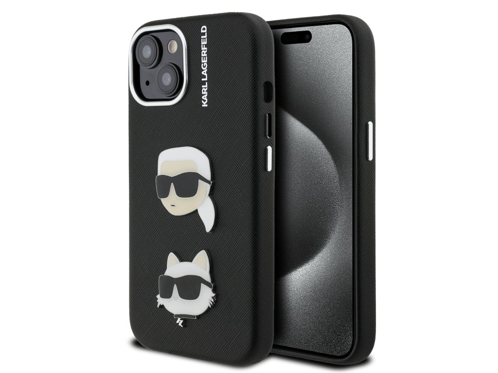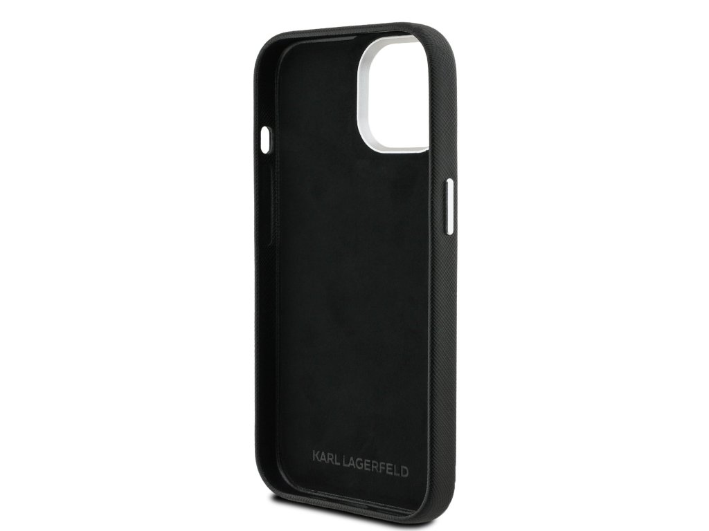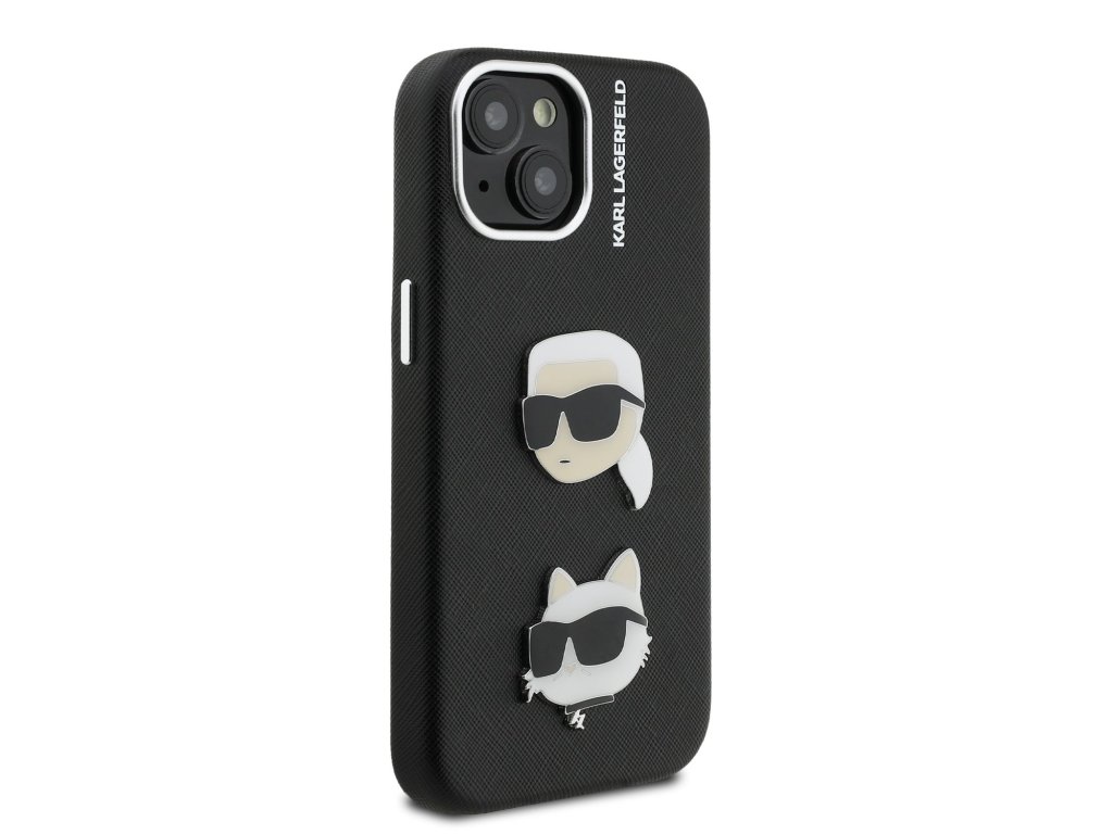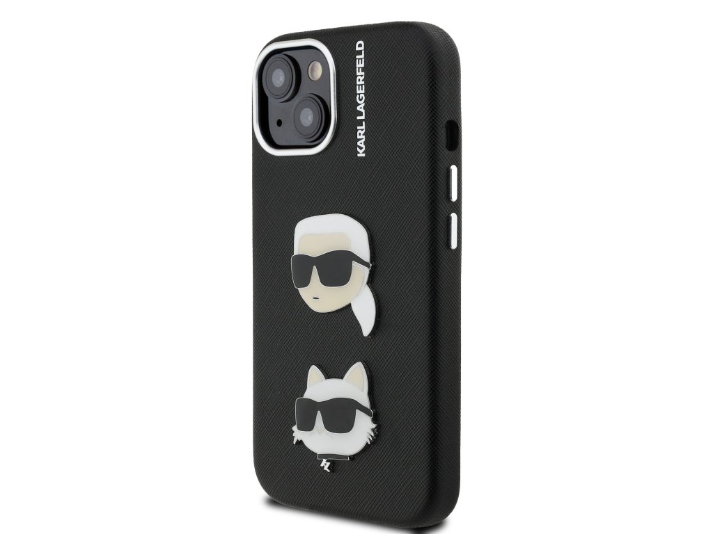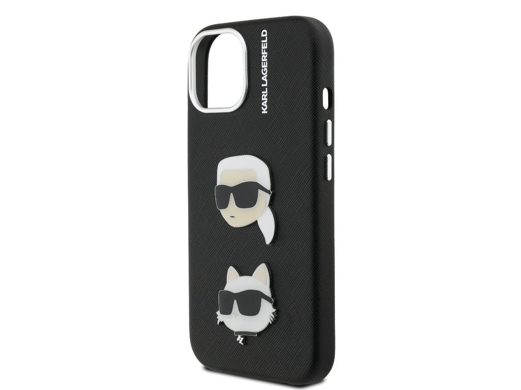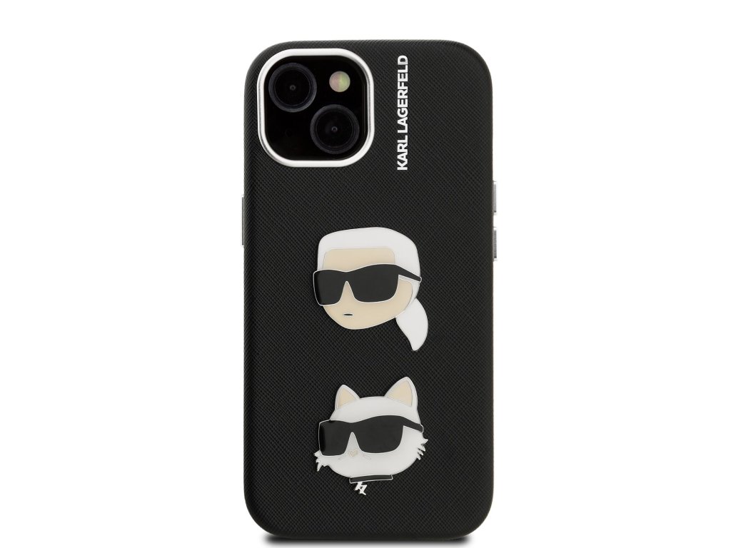 Karl Lagerfeld Grained PU K&CH Heads Zadní Kryt pro iPhone 15 Black