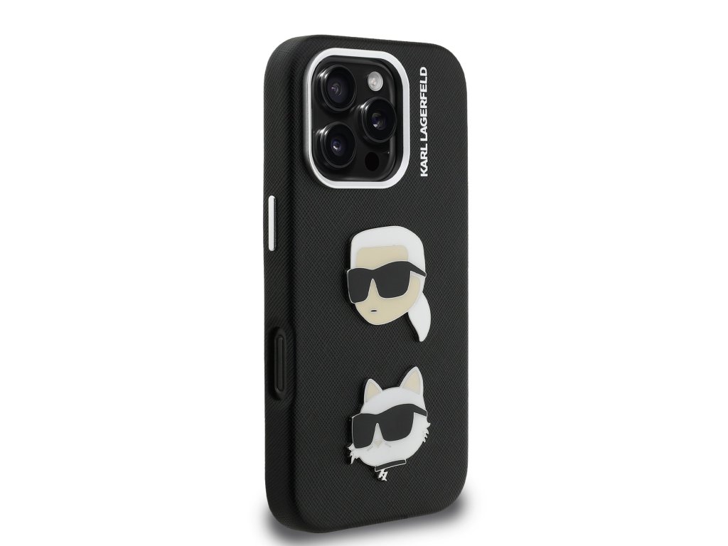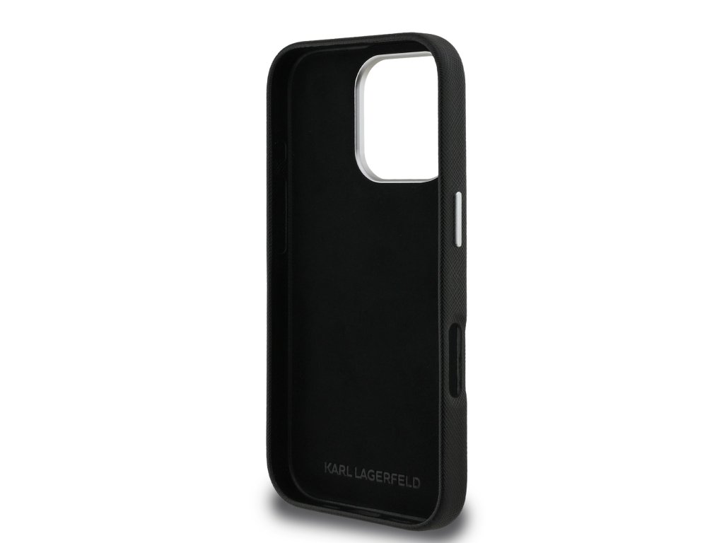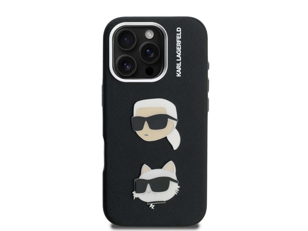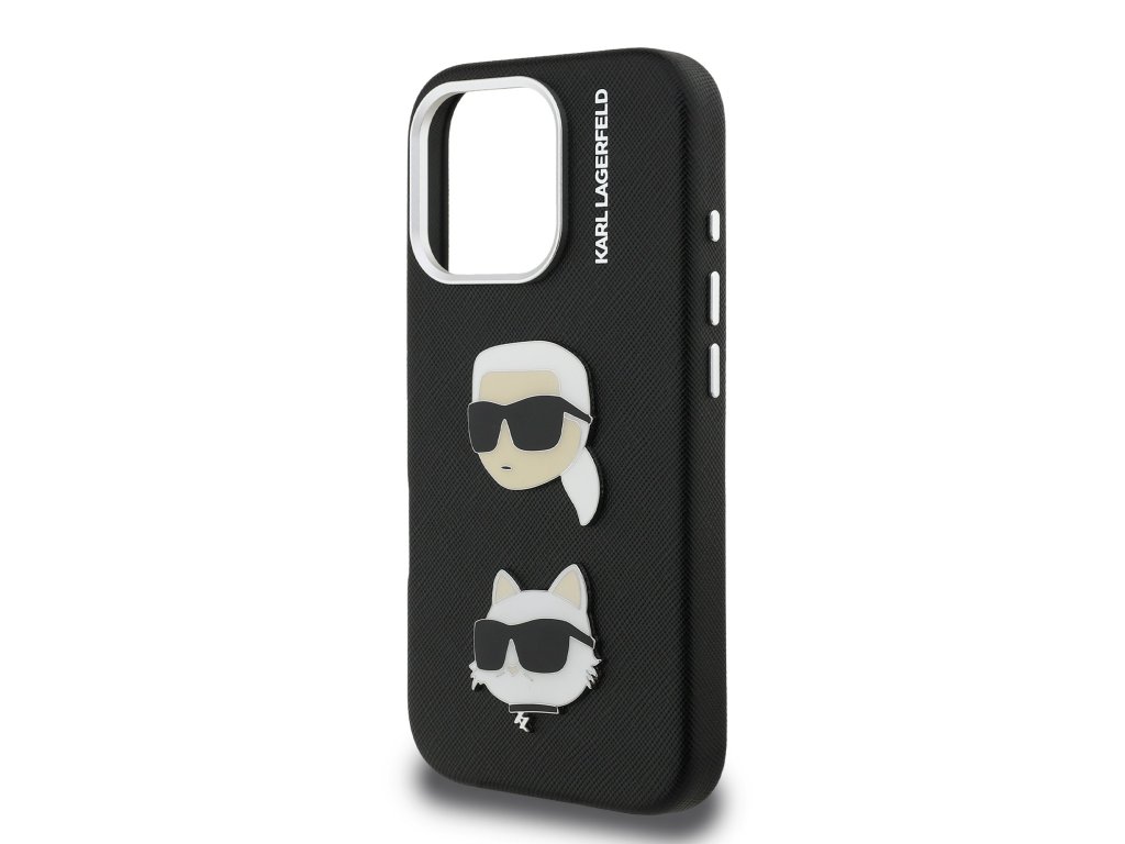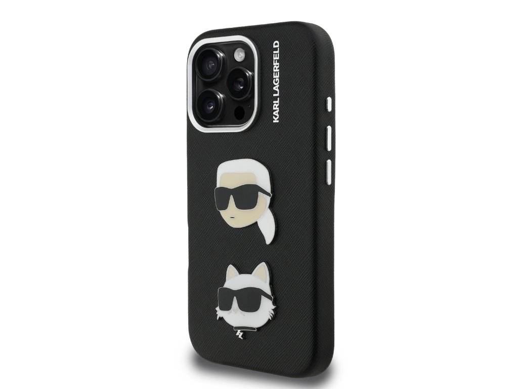 Karl Lagerfeld Grained PU K&CH Heads Zadní Kryt pro iPhone 16 Pro Max Black