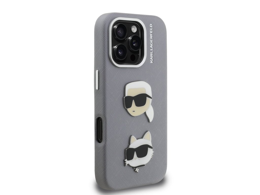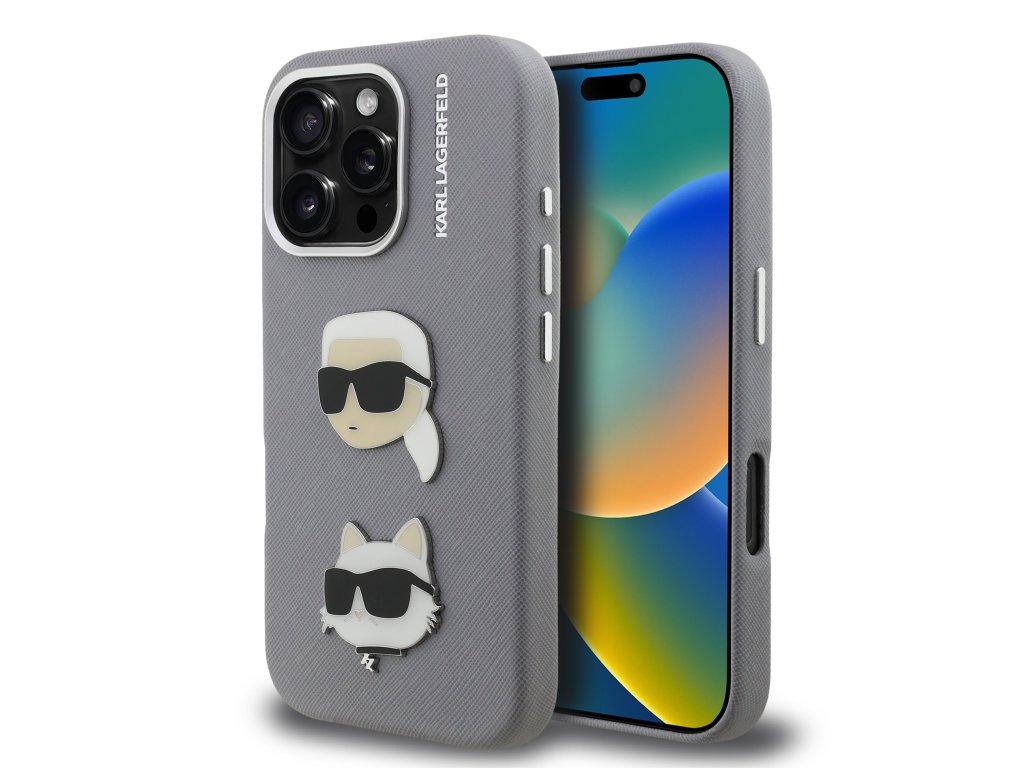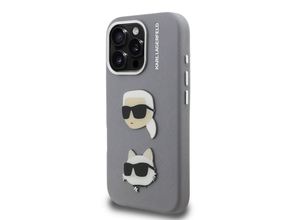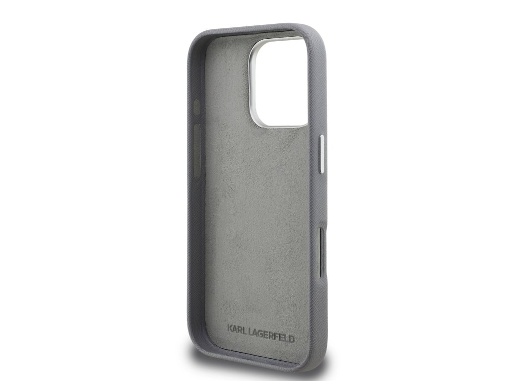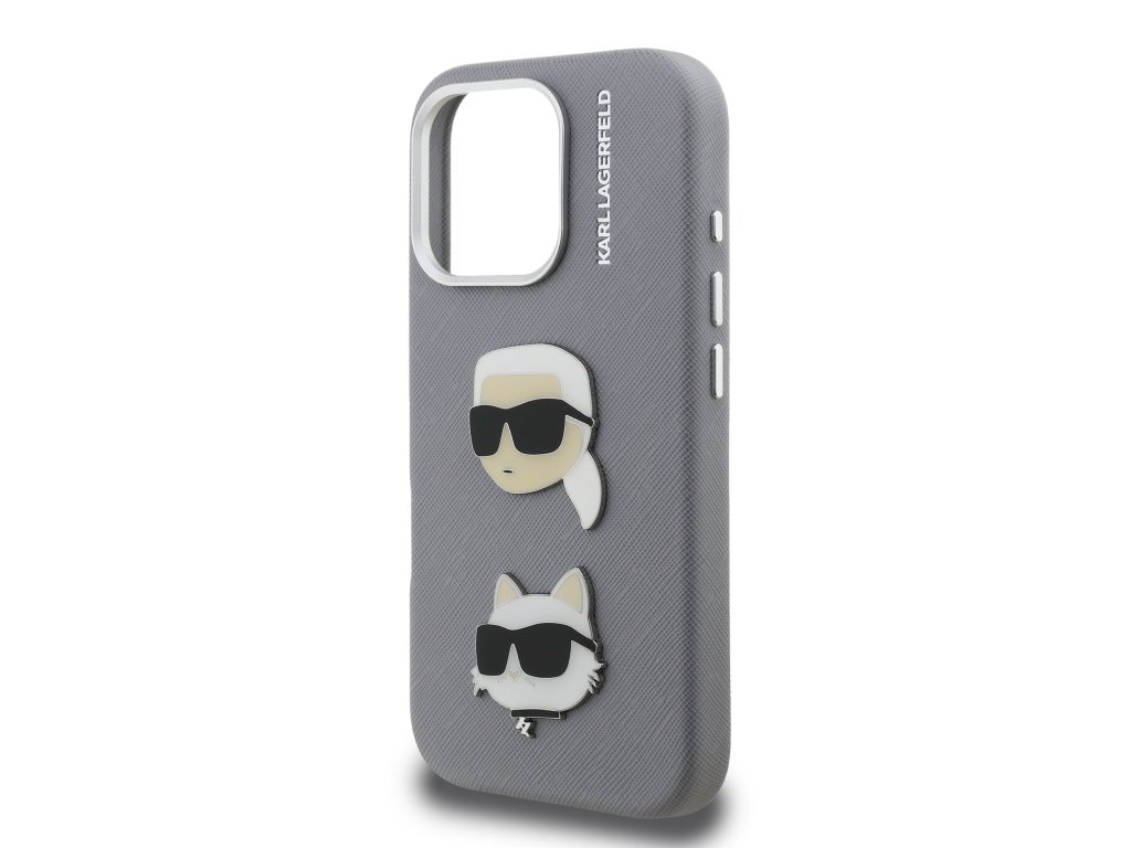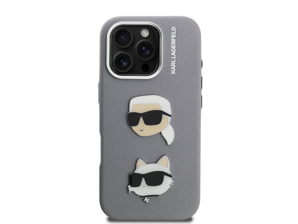 Karl Lagerfeld Grained PU K&CH Heads Zadní Kryt pro iPhone 16 Pro Max Grey