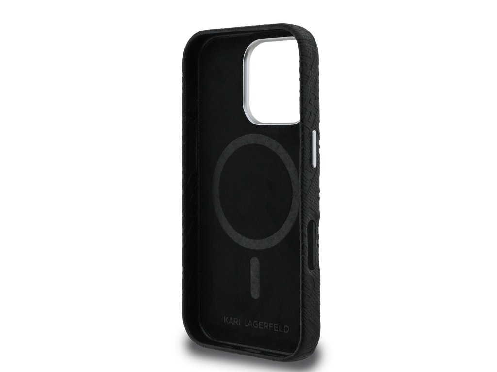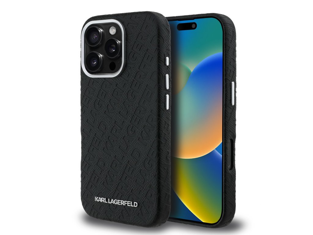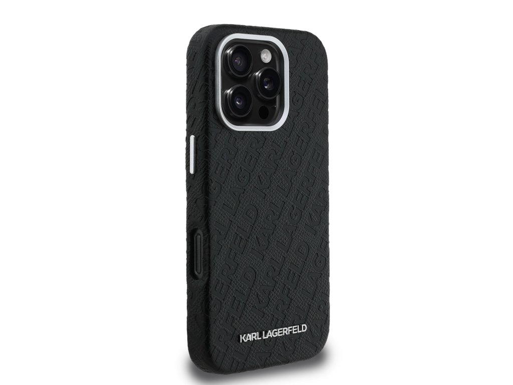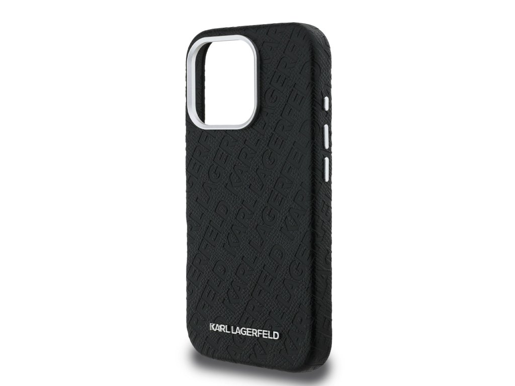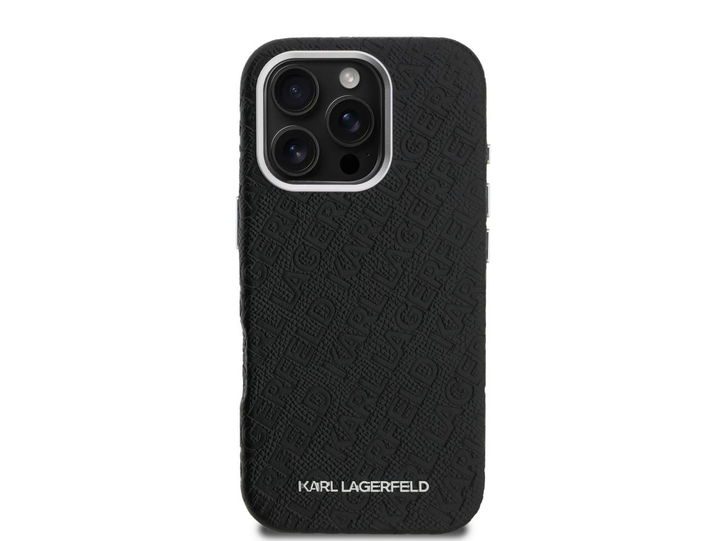 Karl Lagerfeld Grained PU Repeated Logo MagSafe Zadní Kryt pro iPhone 16 Pro Black