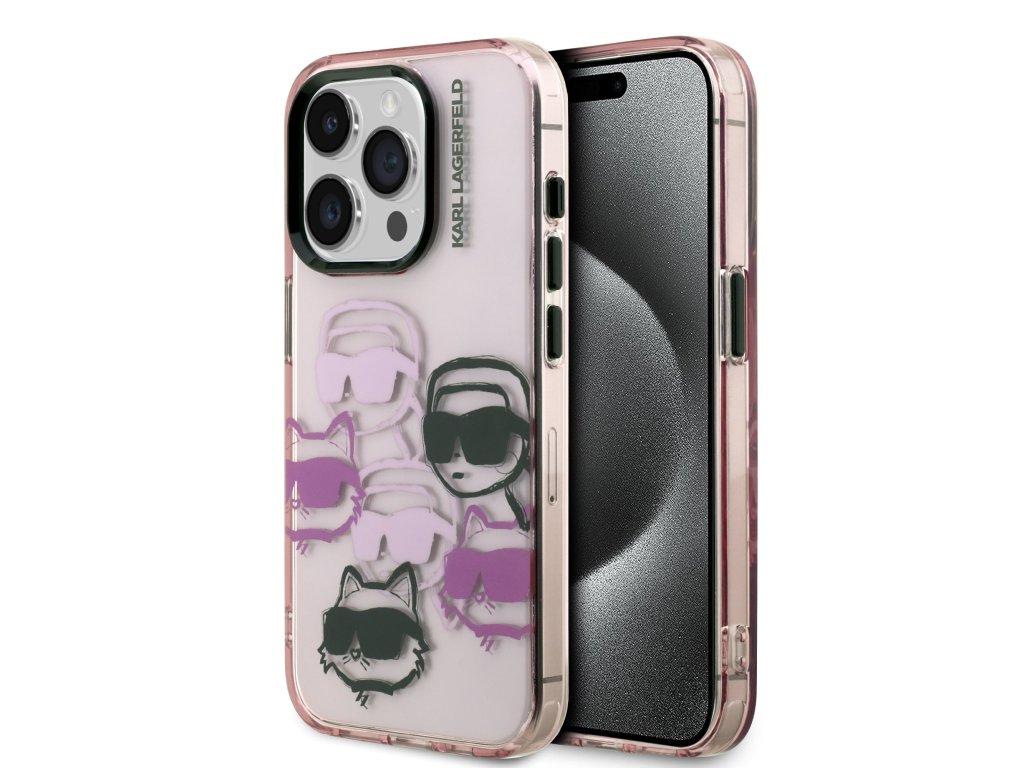 Karl Lagerfeld IML Multi K&CH Heads Zadní Kryt pro iPhone 15 Pro Pink