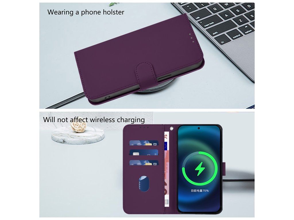 - Materiál: Syntetická PU koža (Skin Feel úprava) + pružný TPU rám