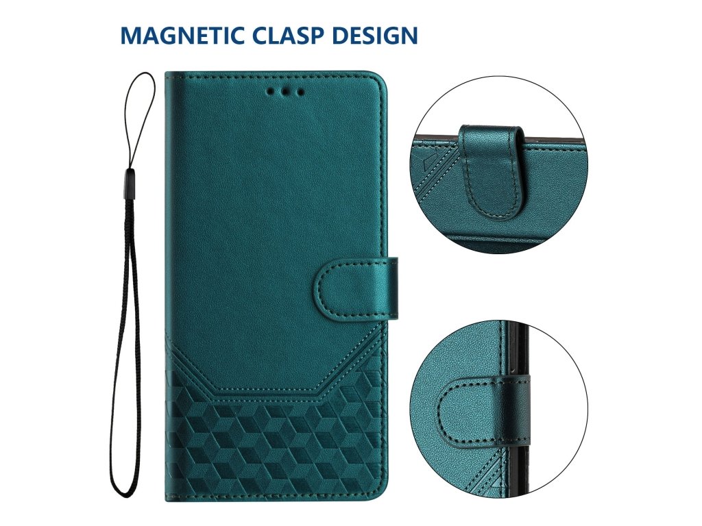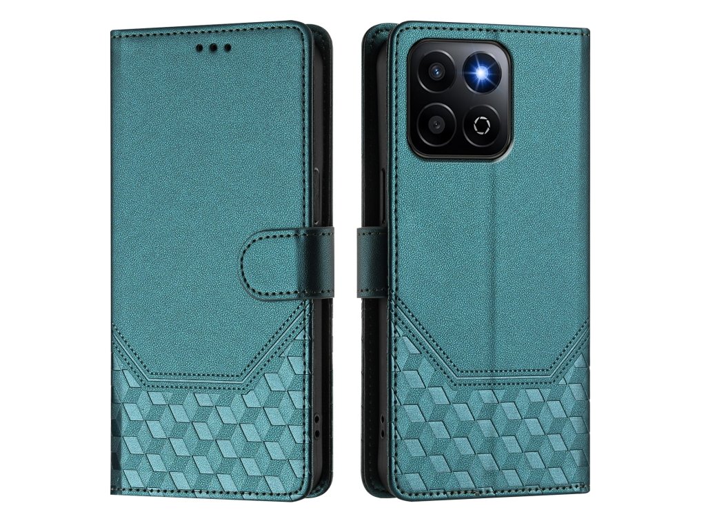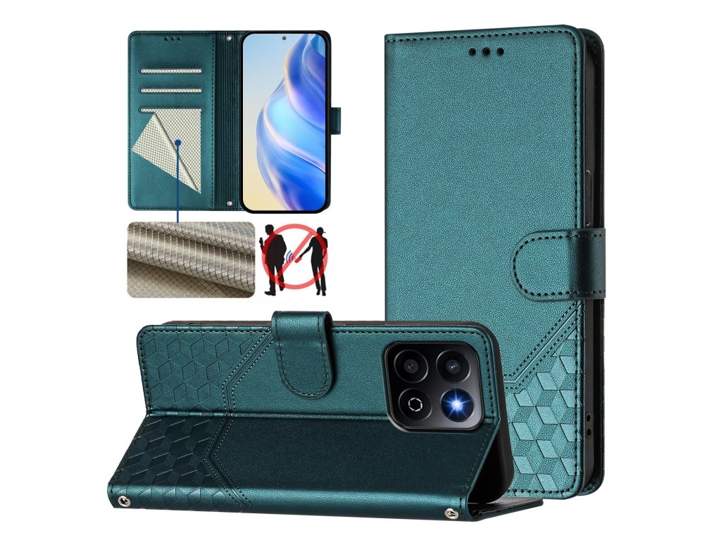 Luxusné knižkové puzdro Embossing RFID pre Honor 200 Smart 5G v odtieni Peacock Green. Kombinácia štýlového embosovaného dizajnu a praktickej RFID ochrany.