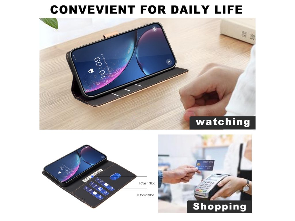 - Kompletná ochrana: Knižkové puzdro poskytuje plnú ochranu vášmu telefónu vrátane predného a zadného krytu, čím minimalizuje riziko poškodenia pri pádoch a nárazoch.