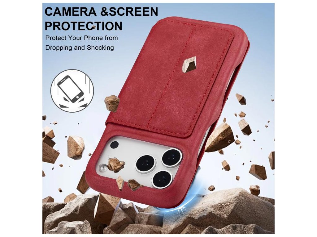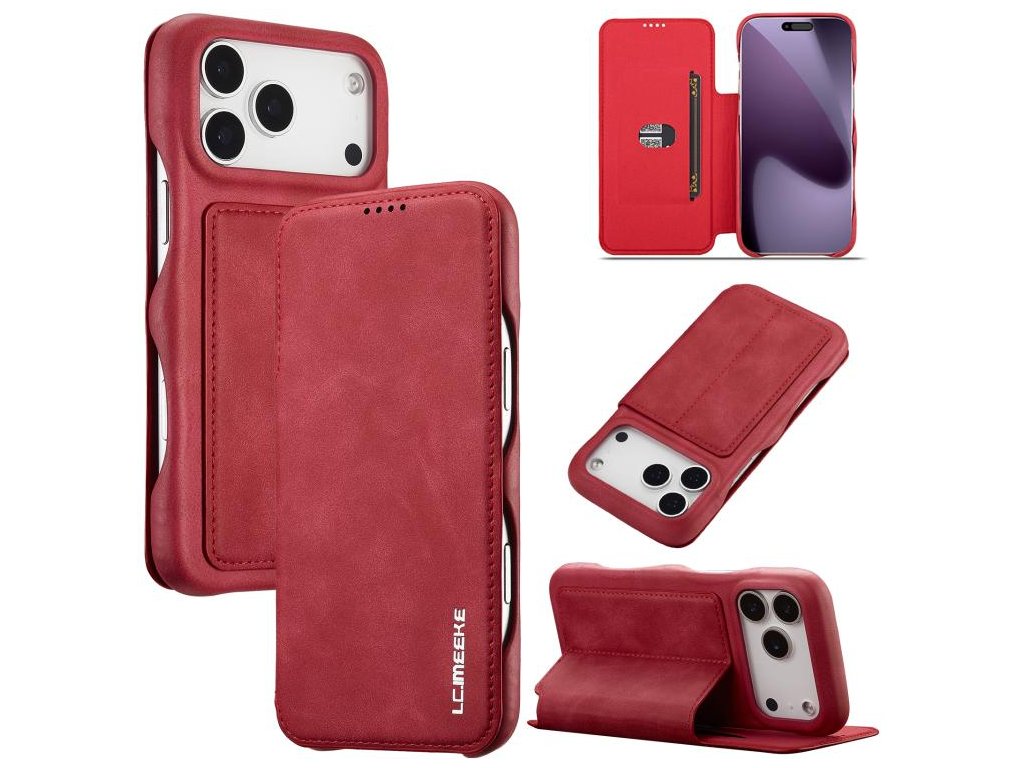 Doprajte svojmu telefónu iPhone 17 Pro Max eleganciu a praktickú ochranu s puzdrom LC.IMEEKE Hon Ancient Series Flip Case v krásnej červenej farbe.