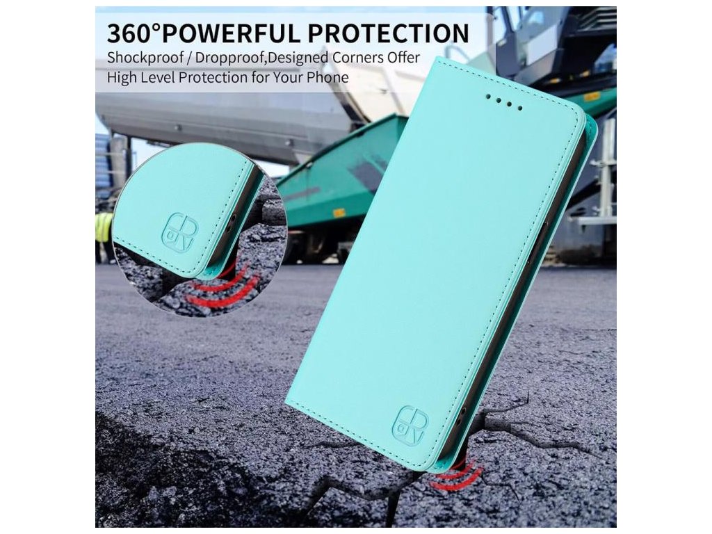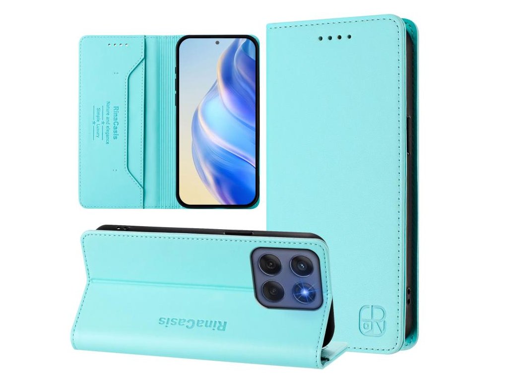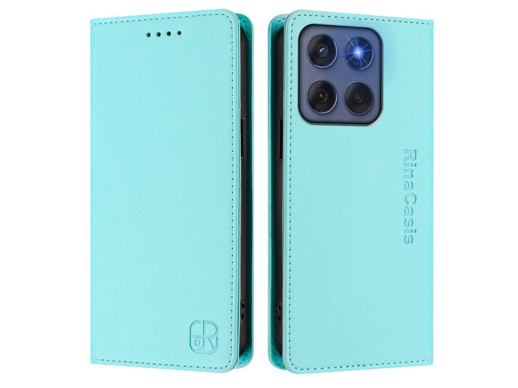Zabezpečte svoj telefón Motorola Edge 5G 2025 / Edge 60 Fusion štýlovo a inteligentne s puzdrom RC01 Dual-Folded RFID Leather Case v sviežej mint zelenej farbe.