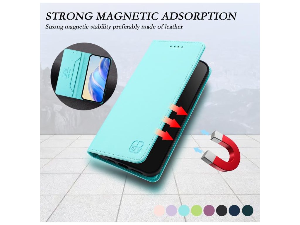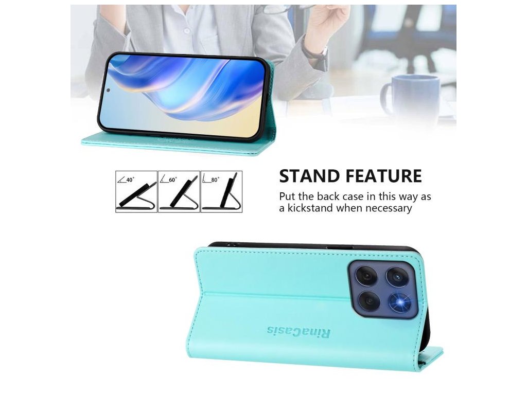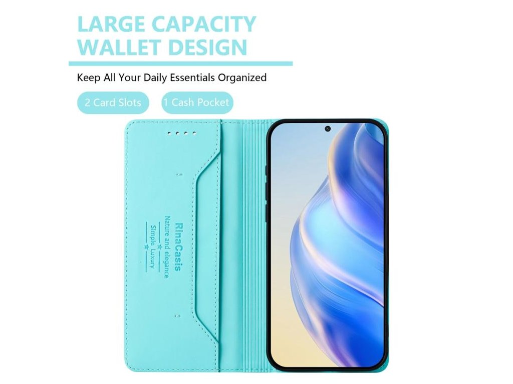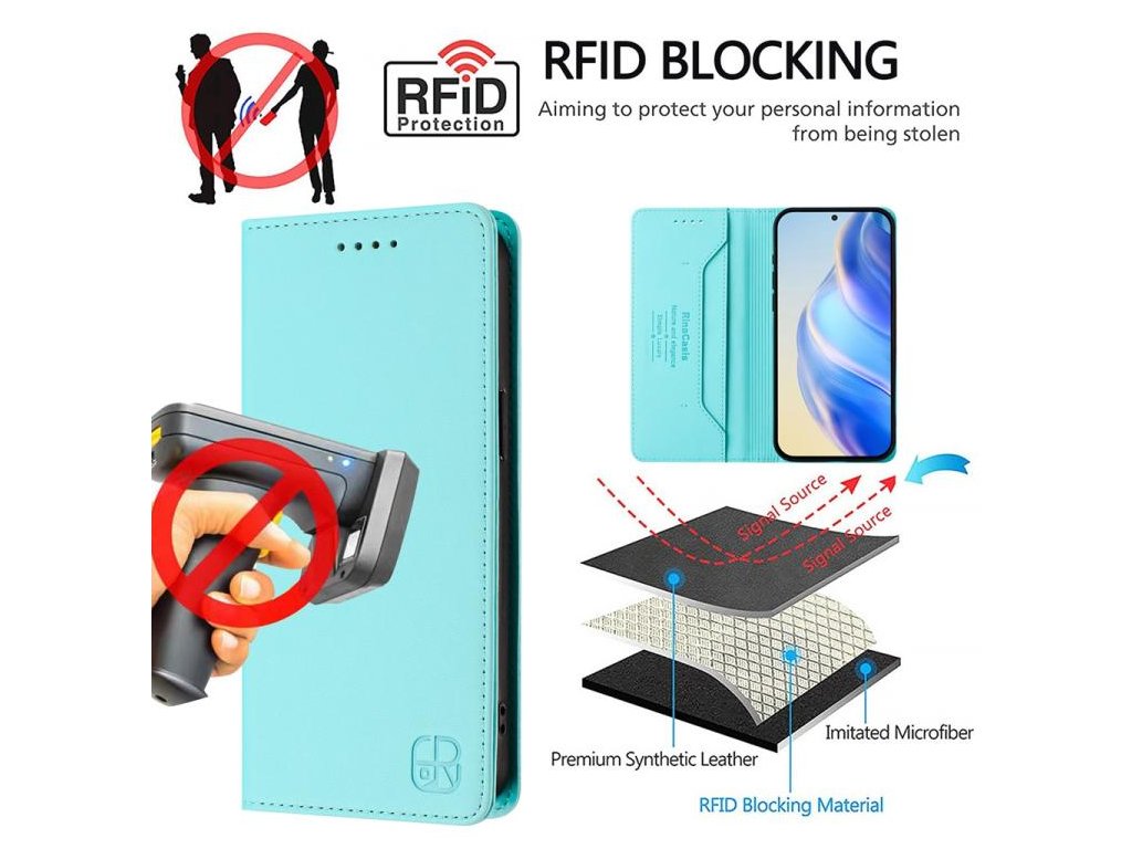 Dvojité skladanie umožňuje pohodlné nastavenie puzdra ako stojan pre sledovanie videí, zatiaľ čo RFID ochrana zabezpečuje vaše bezkontaktné platobné karty pred krádežou dát.