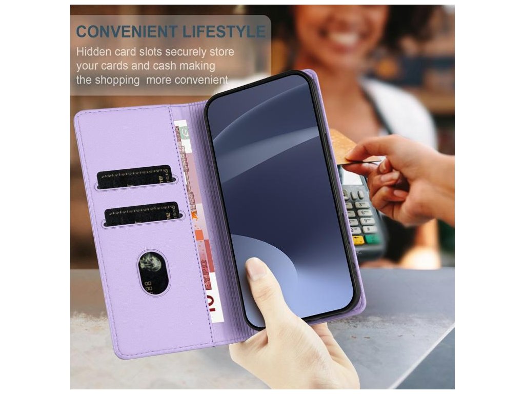 Doprajte svojmu smartfónu štýl a praktickosť s Motorola Moto G35 Embossed Multi-functional Wallet Retro Phone Case (Light Purple).
