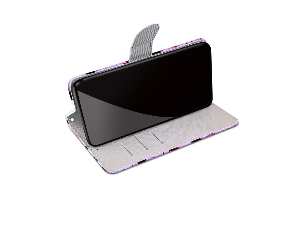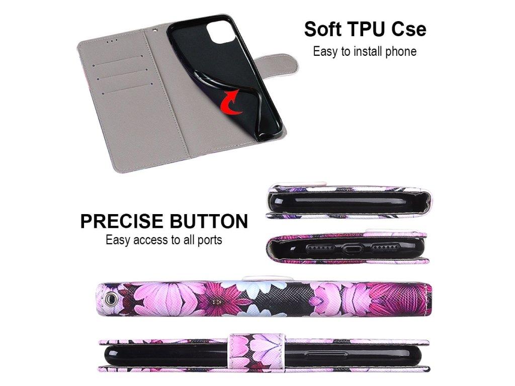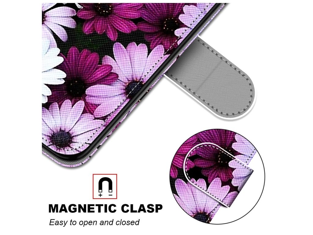 Dizajn s motívom chryzantém v ružovej, bielej a fialovej farbe dodáva puzdru jedinečný vzhľad - je to štýlové a praktické riešenie pre každodenné používanie.