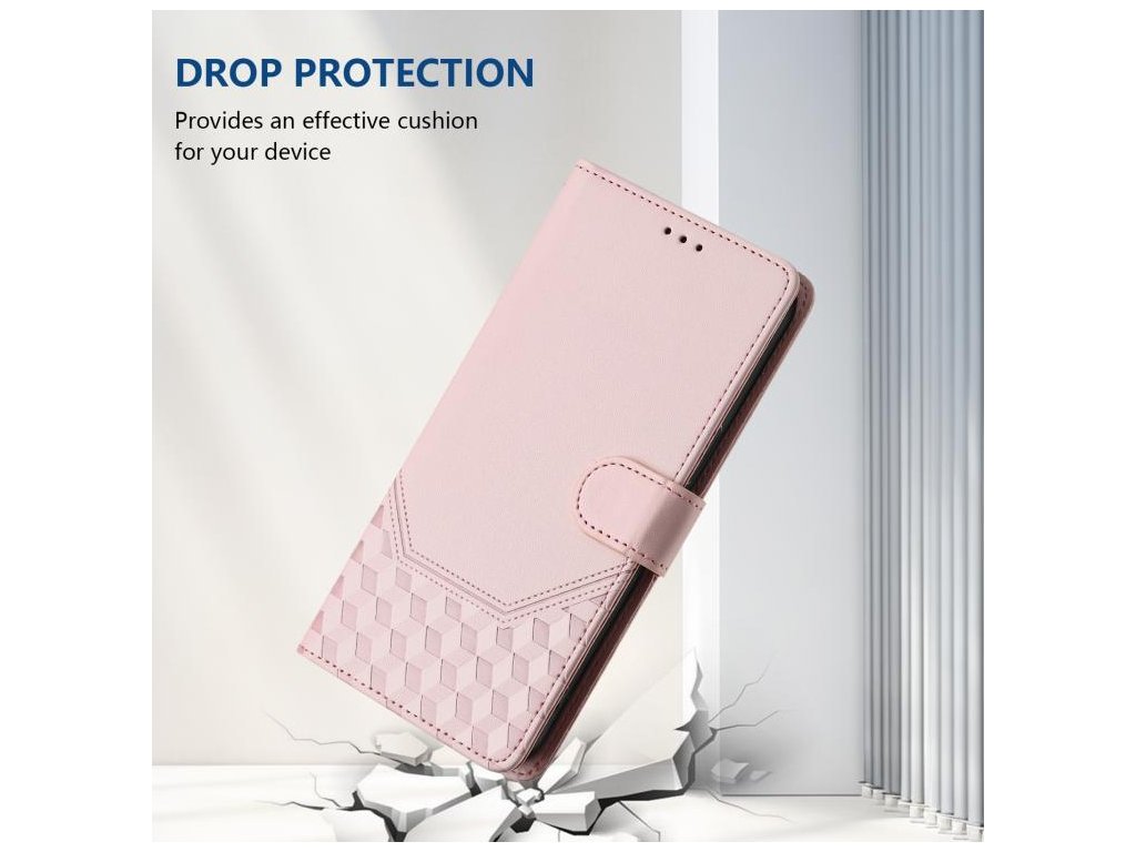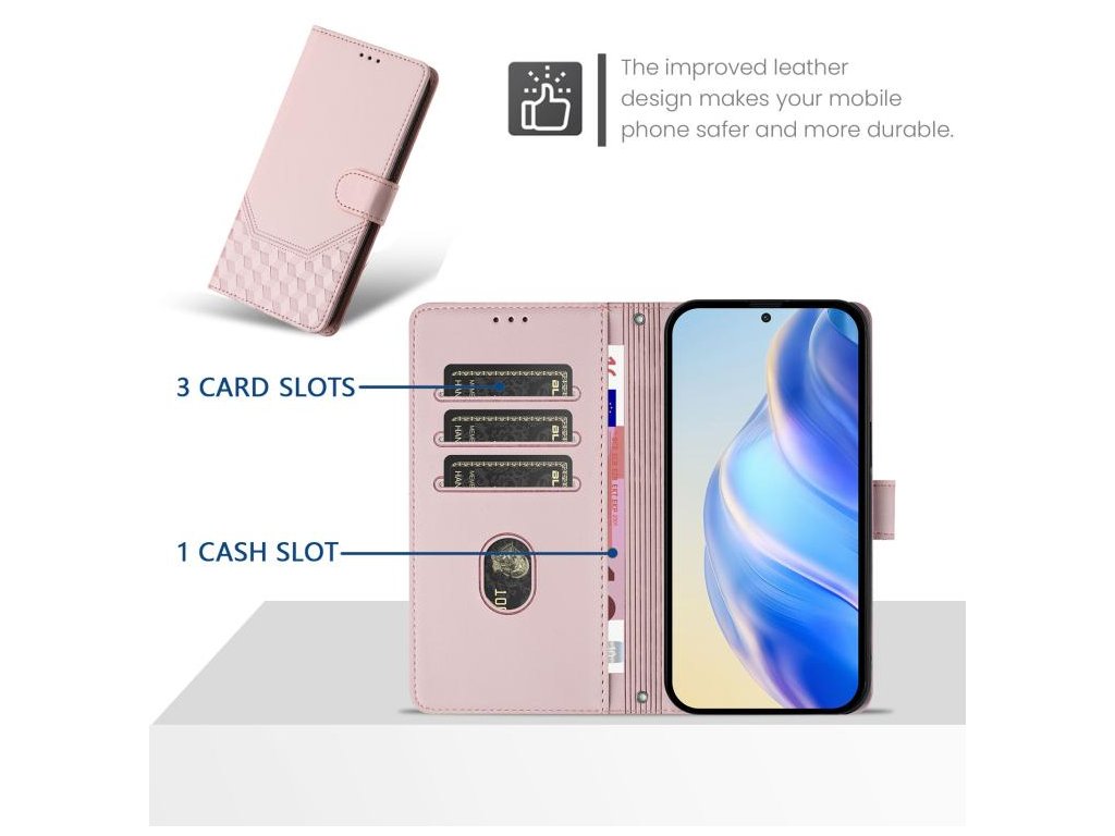 Chráňte svoj Honor X8c 4G s eleganciou a maximálnou bezpečnosťou vďaka tomuto ružovému knižkovému puzdru s RFID ochranou a reliéfnym vzorom včelieho plástu. Puzdro kombinuje módny dizajn s funkčnosťou, ktorú ocení každá používateľka smartfónu.