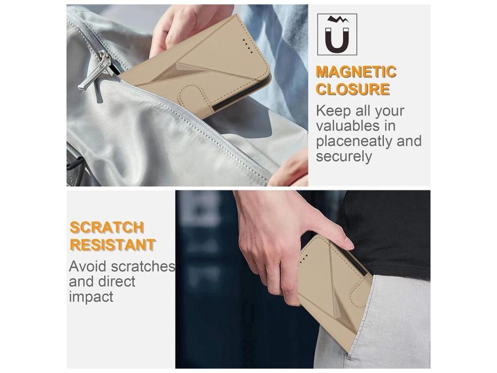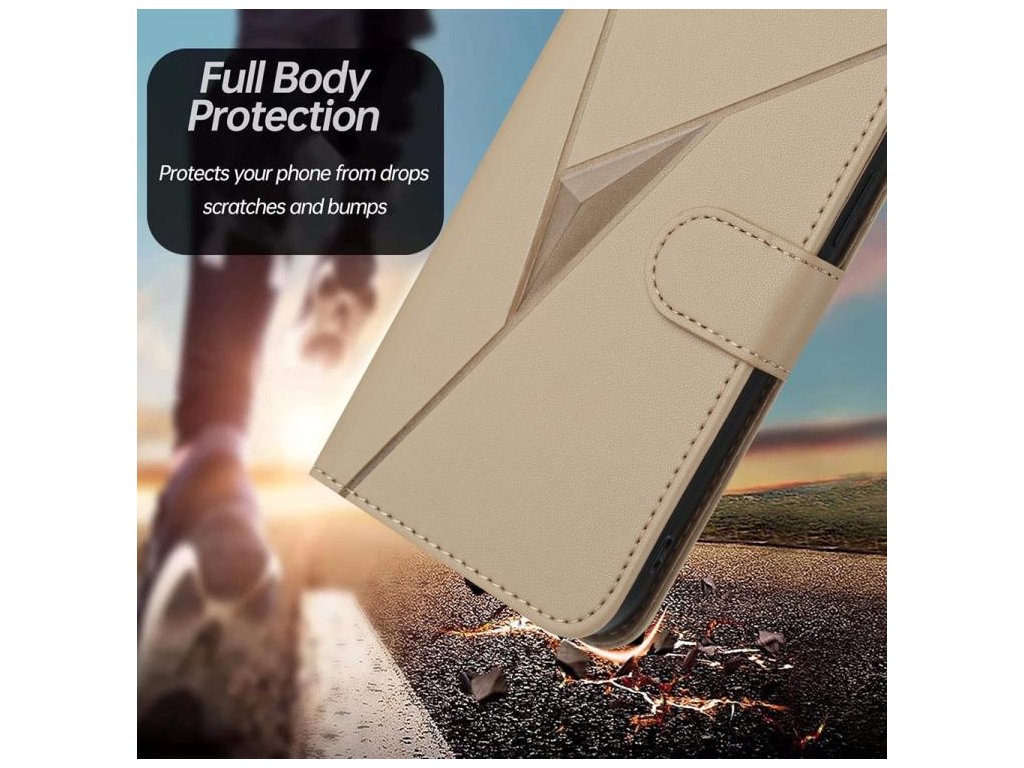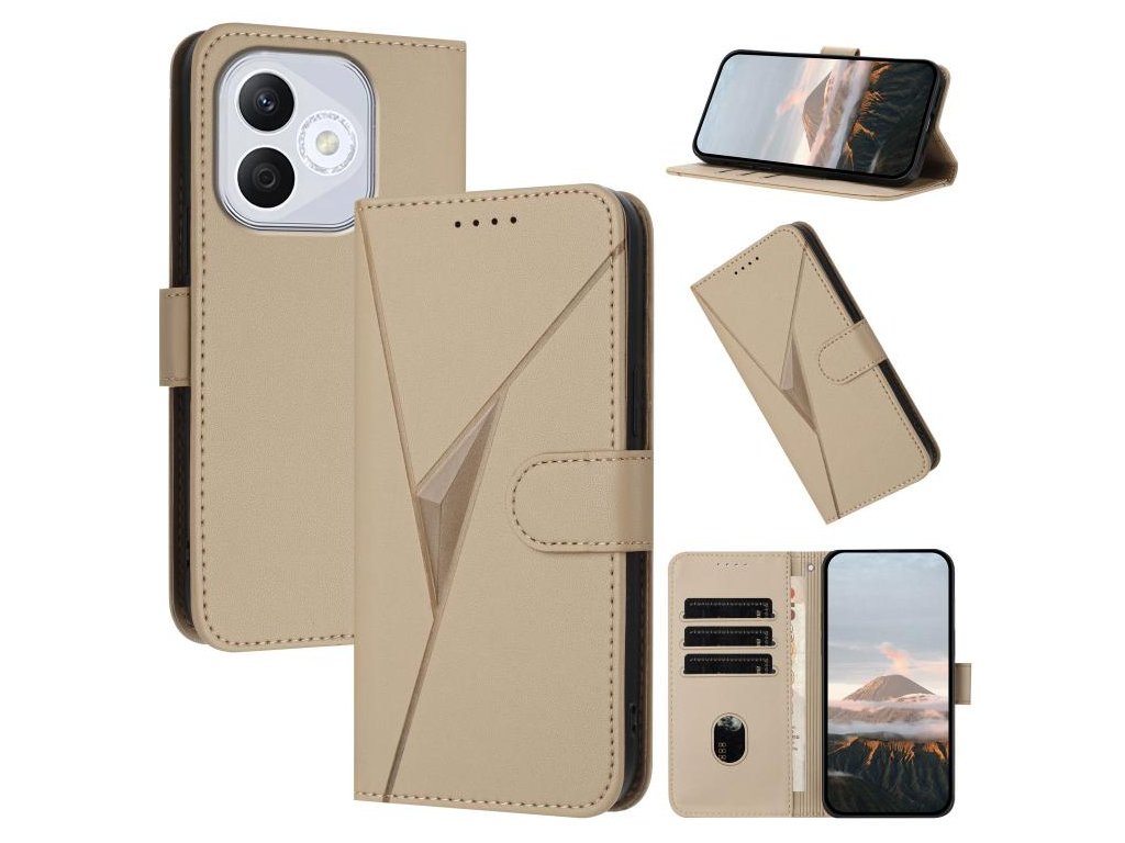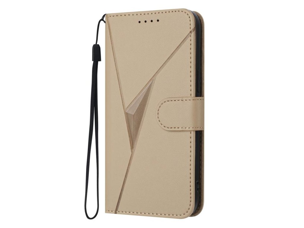Knižkové puzdro s trojuholníkovým vzorom a prackou pre Honor 400 Lite – zlaté