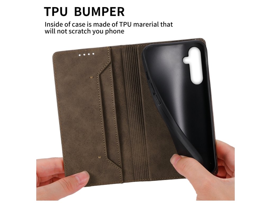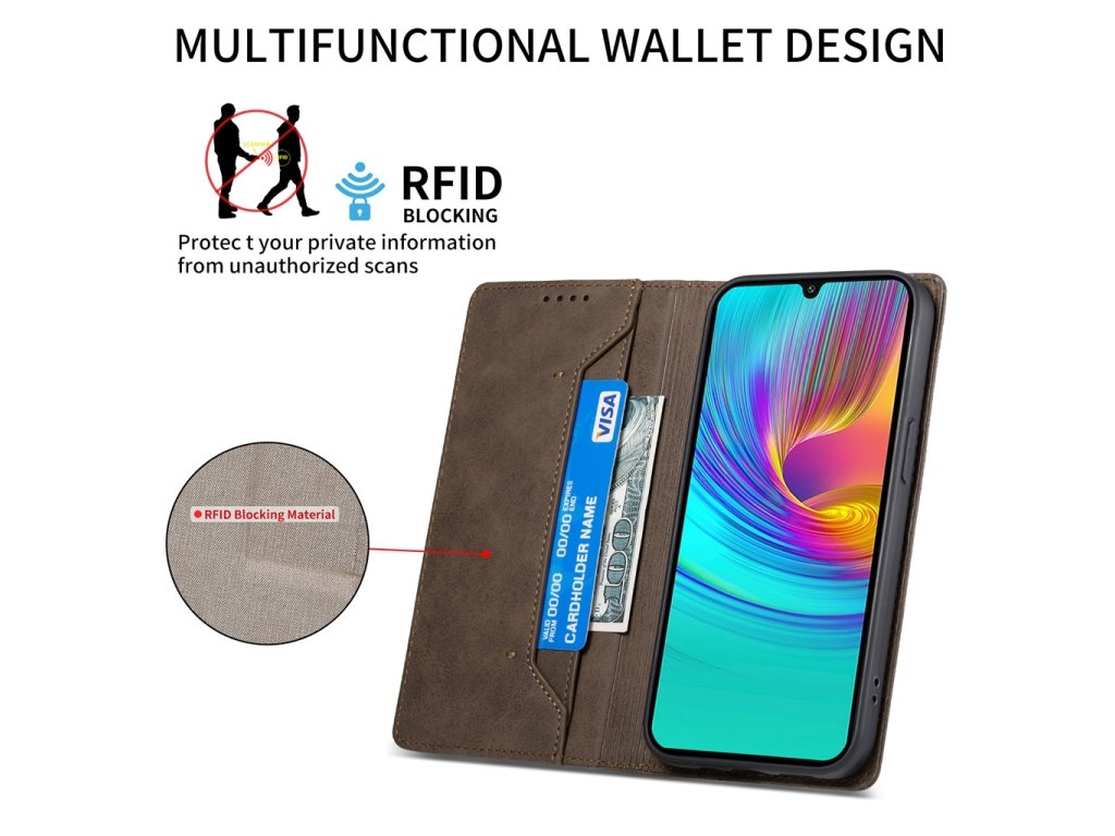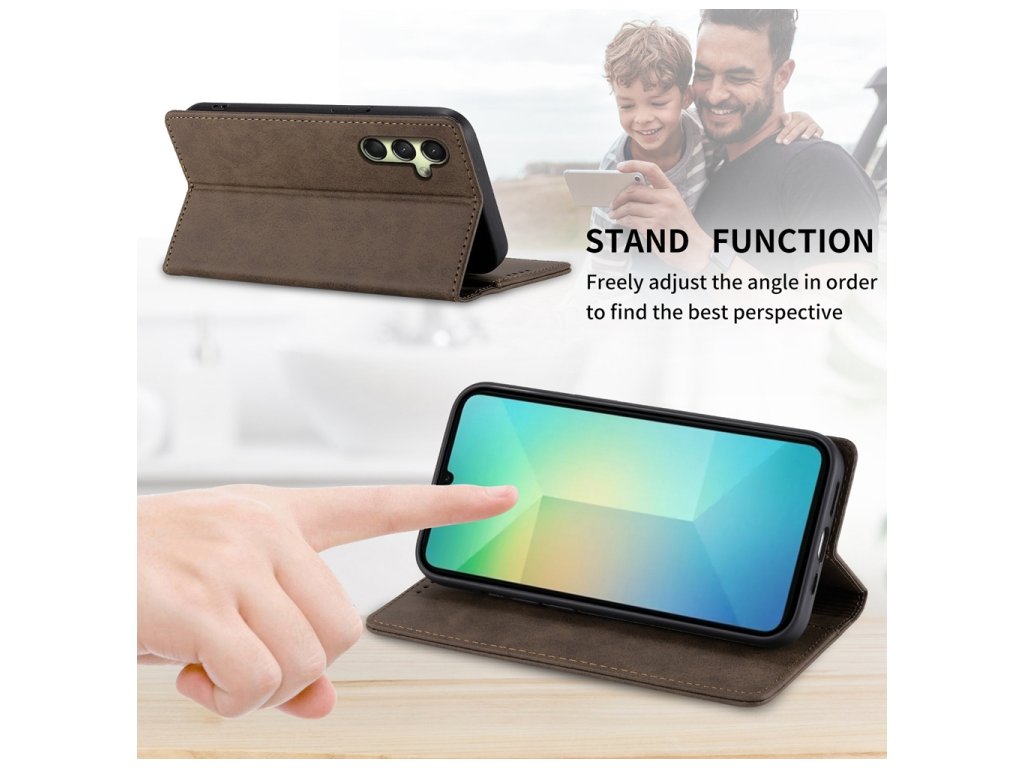 Chráňte svoj telefón Samsung Galaxy A26 5G, A16 alebo A17 4G štýlovo s puzdrom Business Solid Color Magnetic RFID v krásnej hnedej farbe.