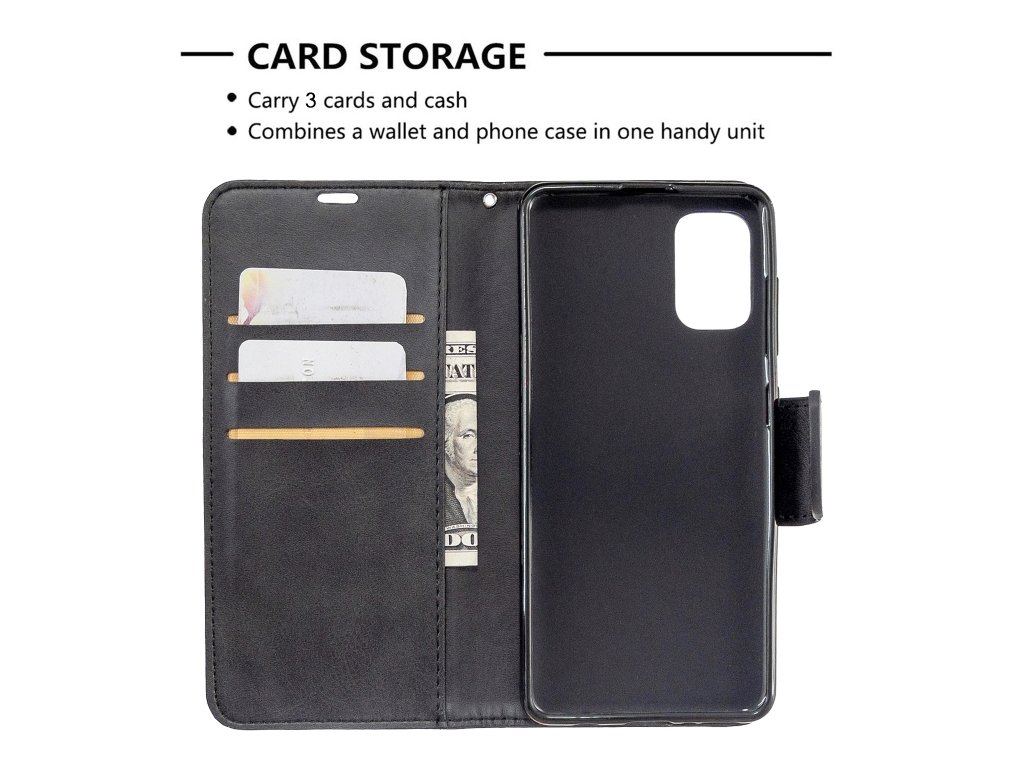 Toto puzdro je vyrobené z kvalitnej imitácie kože a má textúru, ktorá dodáva príjemný a hmatateľný pocit. Jeho štýlový dizajn s horizontálnym sklápaním a výklopným držiakom na telefón, vám umožní pohodlne prezeranie videí, alebo písanie textových správ bez potreby držať váš telefón.