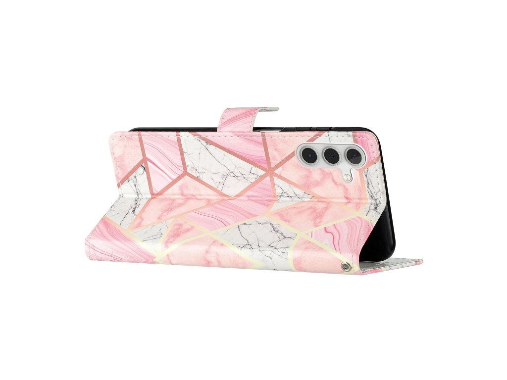 Knižkové puzdro Samsung Galaxy A55 5G s mramorovým motívom ružová farba