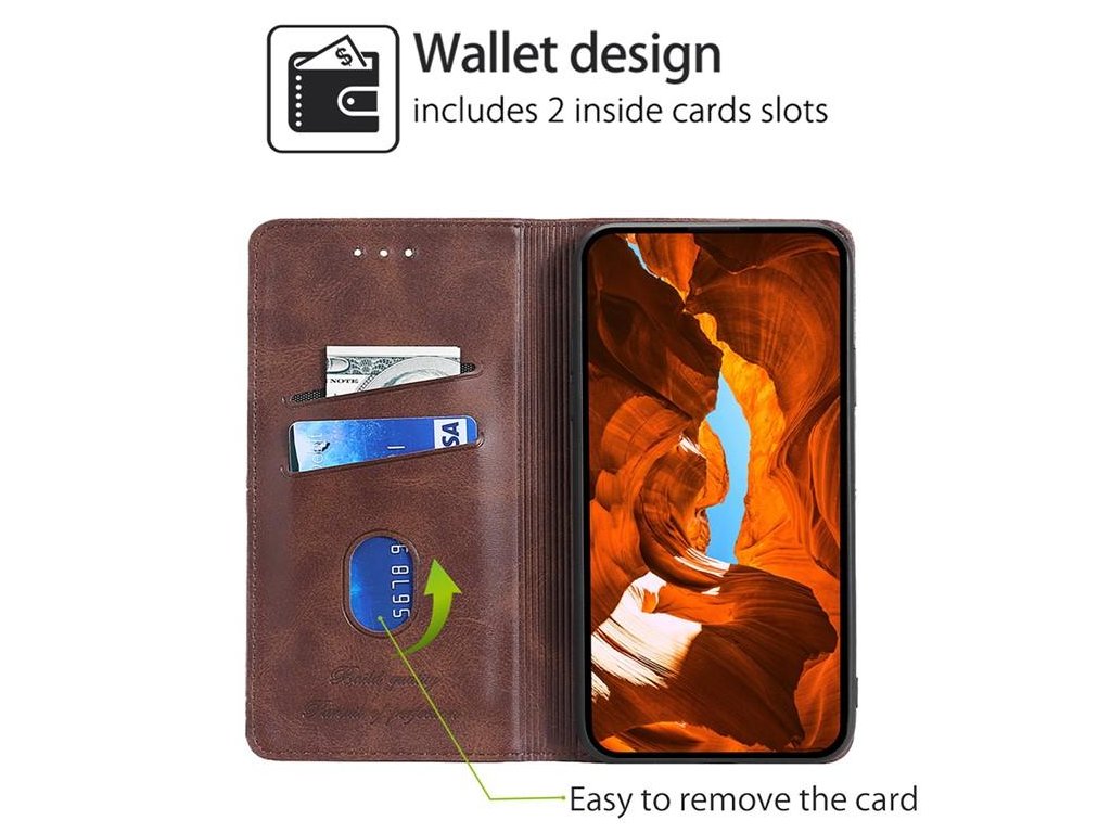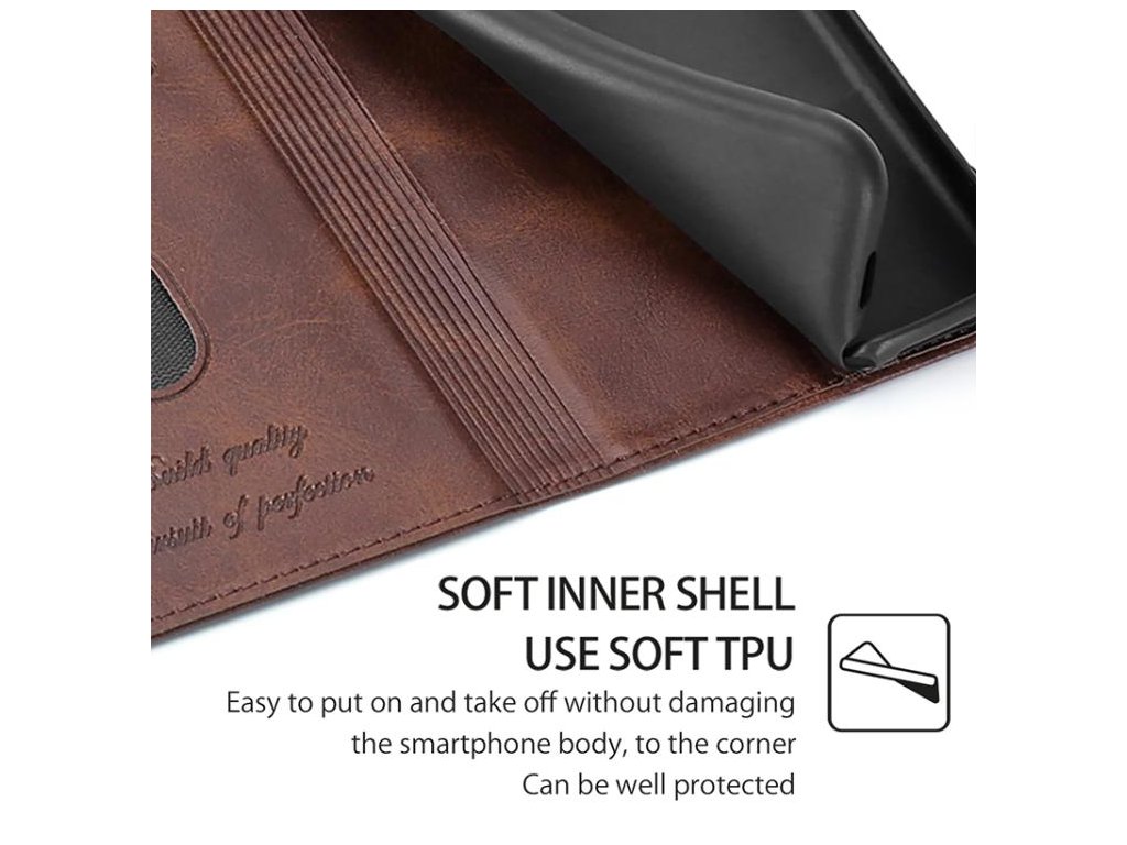 Originálny dizajn s textúrou kože dodáva elegantný a zároveň robustný vzhľad, zatiaľ čo magnetické zatváranie zabezpečuje pohodlné a bezpečné používanie.