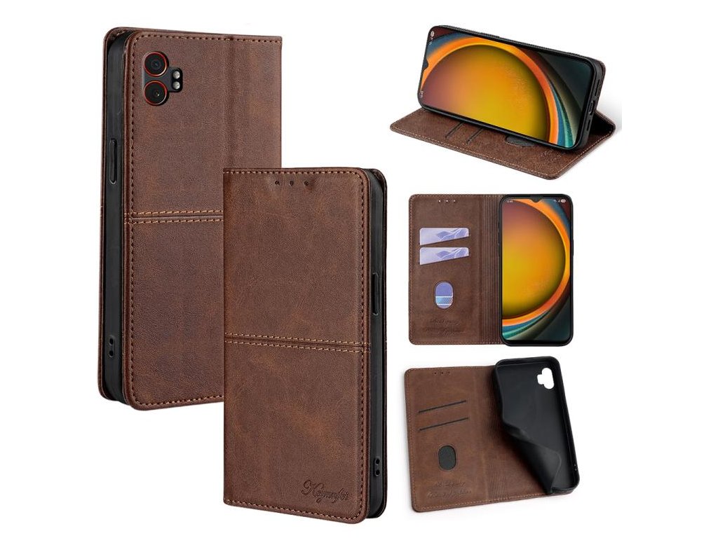 Doprajte svojmu telefónu Samsung Galaxy Xcover 7 Pro 5G prémiovú ochranu s magnetickým puzdrom Cow Texture v tmavohnedej farbe.