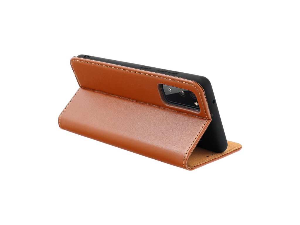 Toto vyklápacie puzdro (typ kniha) je vyrobené z vysoko kvalitnej technickej kože, ktorá je na nerozoznanie od pravej, no je odolnejšia voči poškriabaniu a vlhkosti. Vnútri nájdete pružnú silikónovú (TPU) vaničku, ktorá telefón pevne obopne a tlmí nárazy. Na rozdiel od tvrdých plastov tento materiál nepraská a chráni boky aj rohy telefónu. Puzdro chráni nielen chrbát, ale po zatvorení aj citlivý displej.