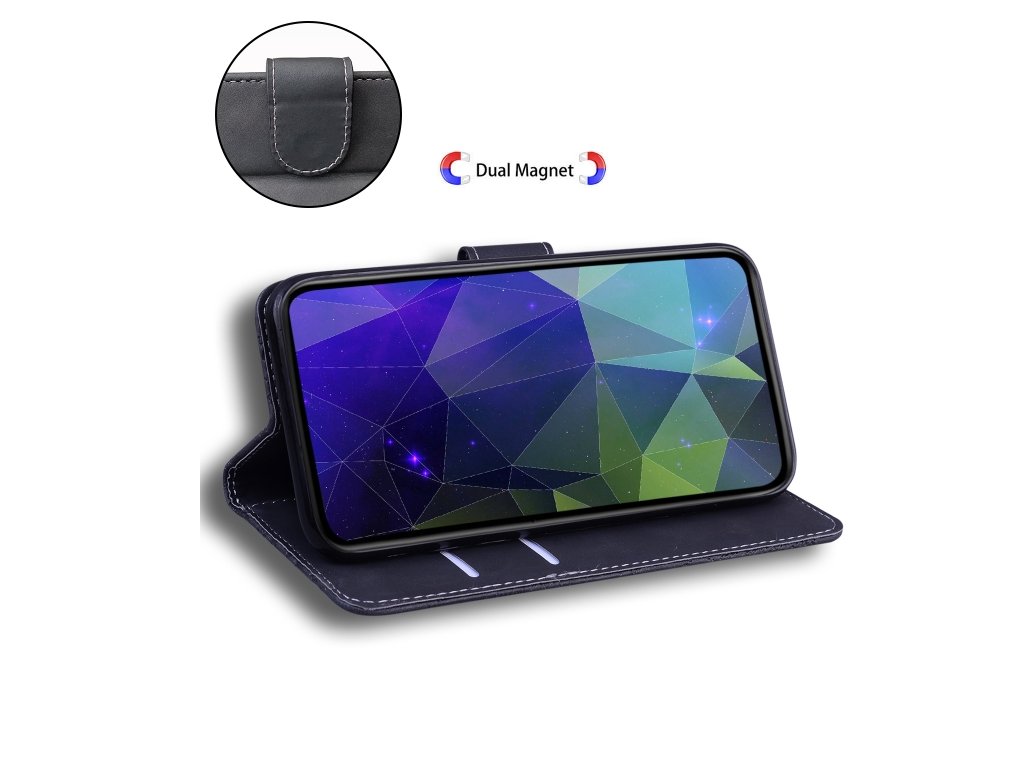 - Flip Leather: Toto potvrdzuje, že puzdro má dizajn s preklápacím krytom a je vyrobené z materiálu, ktorý pripomína kožu.