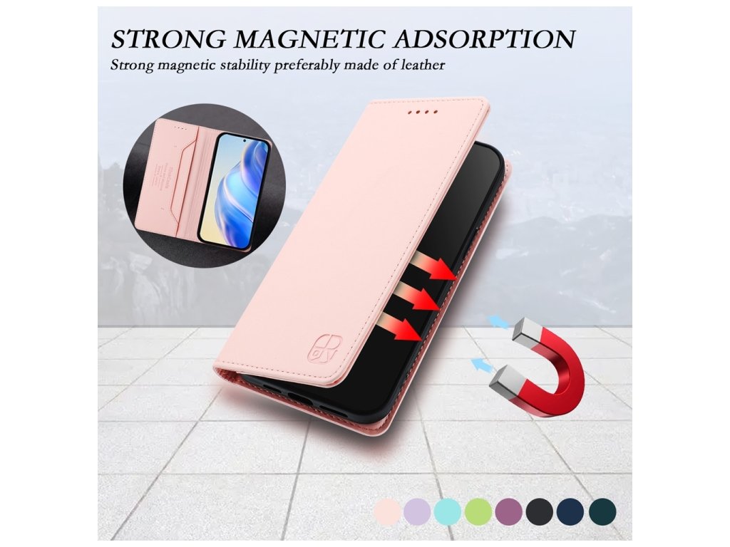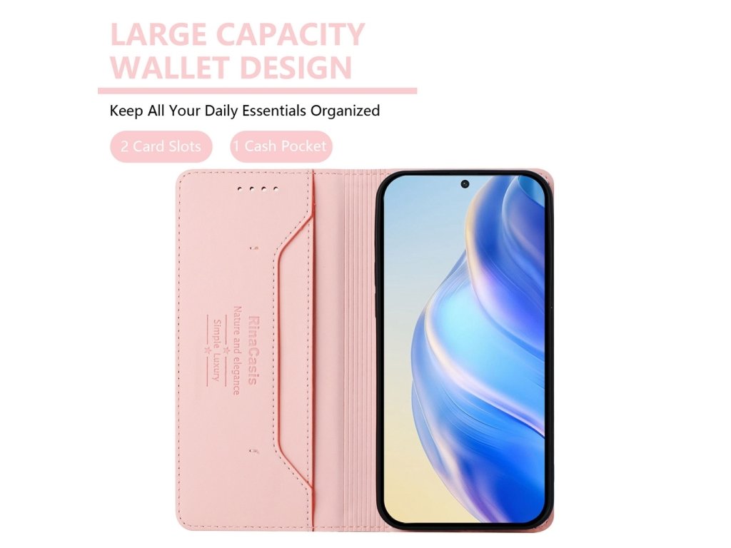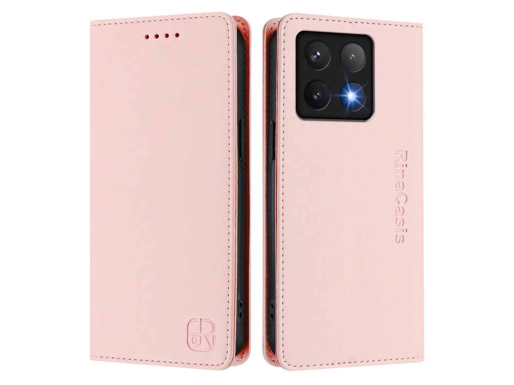 Krásne ružové knižkové puzdro pre telefón Xiaomi 14T Pro s magnetickým zatváraním a RFID ochranou. Chráň svoj telefón a karty s eleganciou!