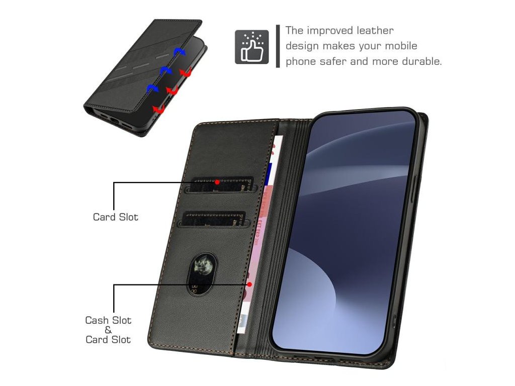 Ochráňte svoj telefón štýlovo s elegantným knižkovým puzdrom Xiaomi Redmi A5 4G (173,3 mm) v čiernej farbe. Embosovaný vzor dodáva puzdru jedinečný vzhľad, zatiaľ čo praktické funkcie ako stojan, magnetické zatváranie a priehradky na karty robia z tohto puzdra ideálneho každodenného spoločníka. Spoľahlivá ochrana spojená s dizajnom, ktorý zaujme na prvý pohľad.