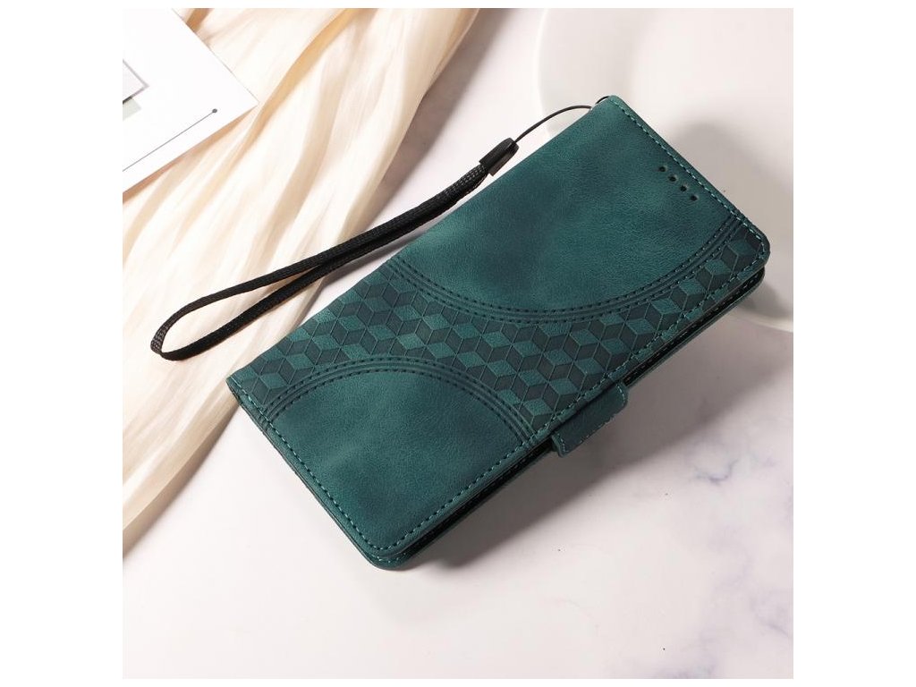 Knižkové puzdro s embosovaným motívom hviezd v zelenom prevedení pre Xiaomi Redmi A5 4G (173,3 mm). Elegantné riešenie ochrany telefónu s praktickými funkciami – priehradky na karty, magnetické zatváranie a stojan na sledovanie videí.