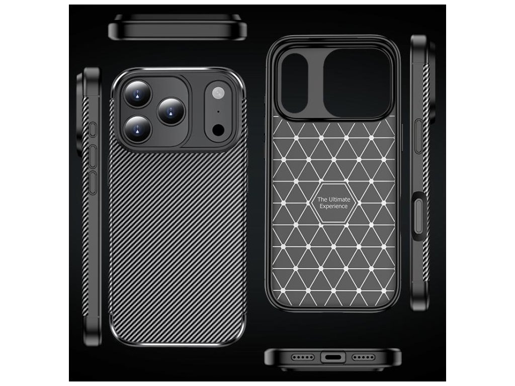 Ochráňte svoj telefón iPhone 17 s odolným puzdrom Carbon Fiber Texture Shockproof TPU Case v čiernej farbe.