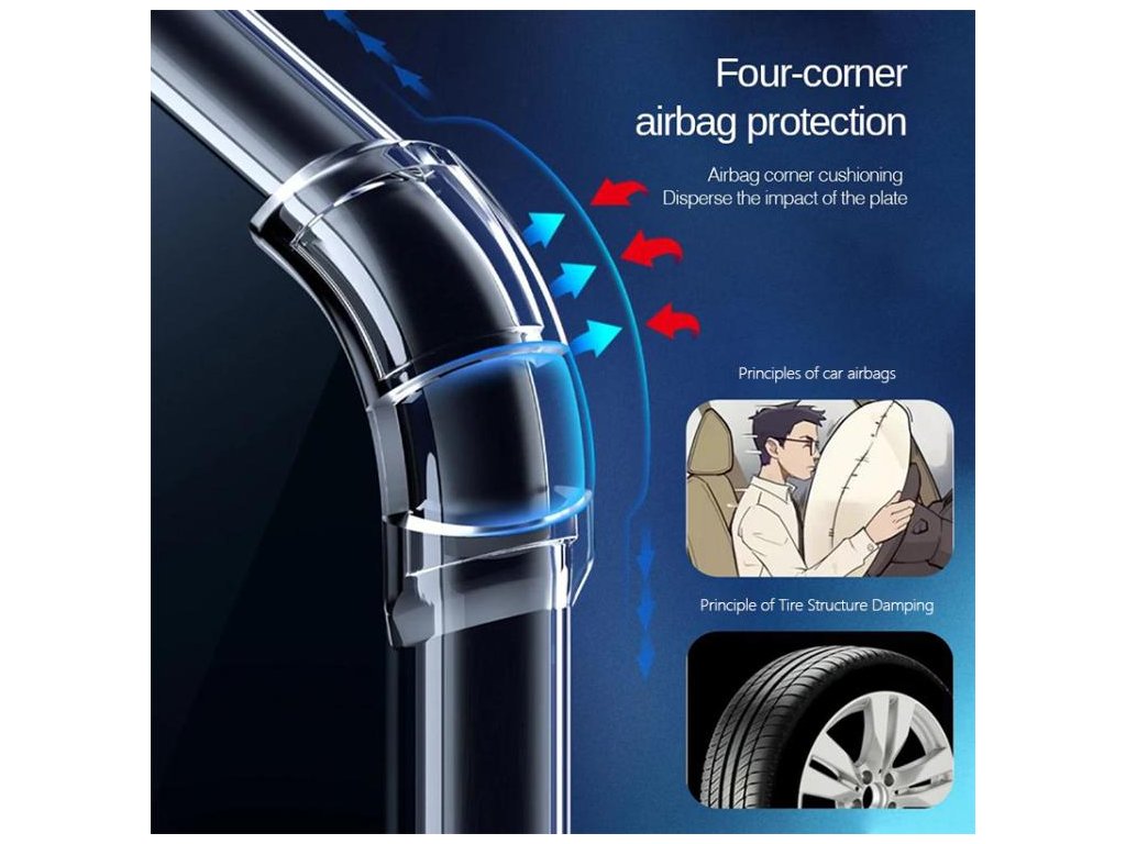 Ultra číry TPU materiál hrúbky 1,5 mm zachováva originálny vzhľad telefónu, zatiaľ čo štyri rohové airbagy účinne pohlcujú nárazy a chránia zariadenie pred pádmi a poškriabaním.