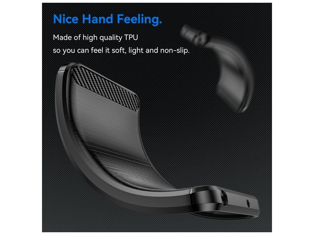 Vyrobený z odolného TPU materiálu, kryt spoľahlivo chráni pred škrabancami, nárazmi a bežným opotrebovaním. Protišmykový povrch zabezpečuje pevný úchop a štýlový vzhľad s jemnou textúrou karbónu. Vnútorná strana má jemný vzor, ktorý znižuje prehrievanie zariadenia.