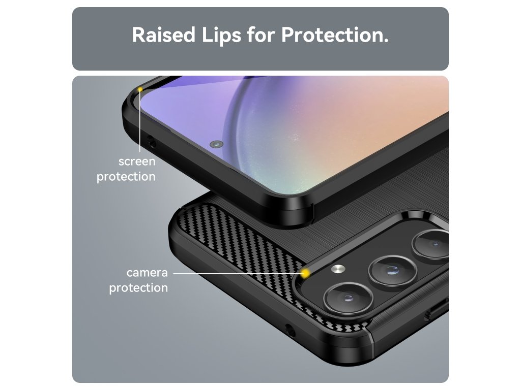 Dopraj svojmu telefónu Samsung Galaxy A55 štýlovú ochranu s CARBON krytom v elegantnej čiernej farbe. Tento moderný ochranný kryt kombinuje vzhľad karbónových vlákien s pevnou štruktúrou a precíznym vyhotovením, ktoré dokonale sadne na tvoje zariadenie.