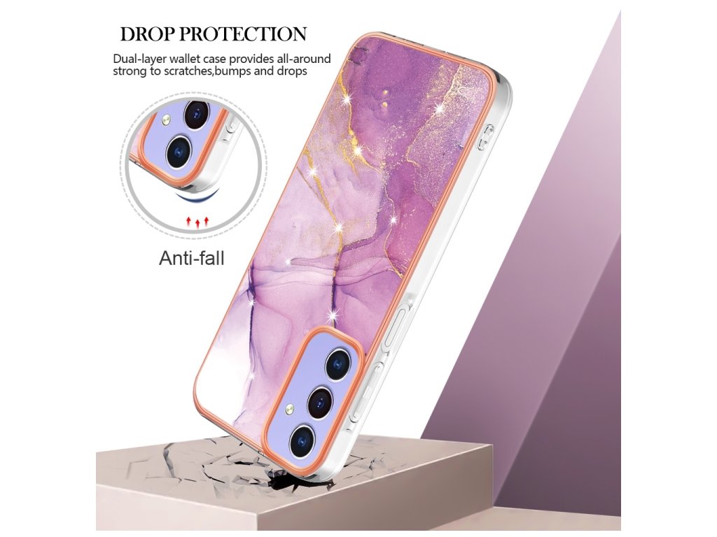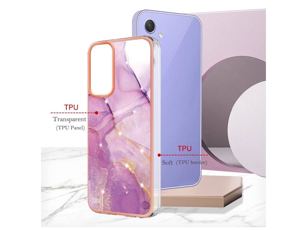 Elegantný kryt Samsung Galaxy A15 5G Electroplating Marble Dual-side IMD (Purple 001) spája štýl, ochranu a luxusný dizajn.