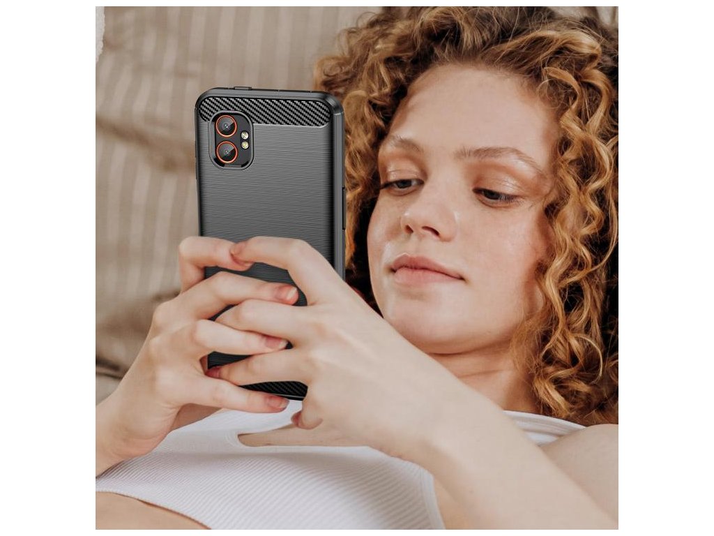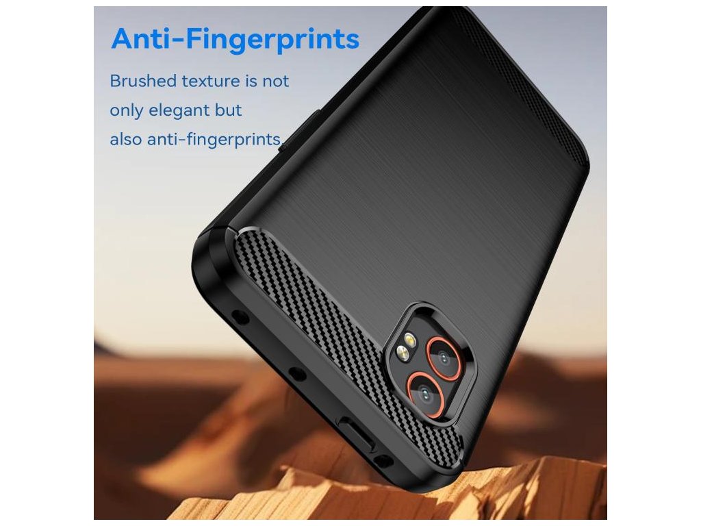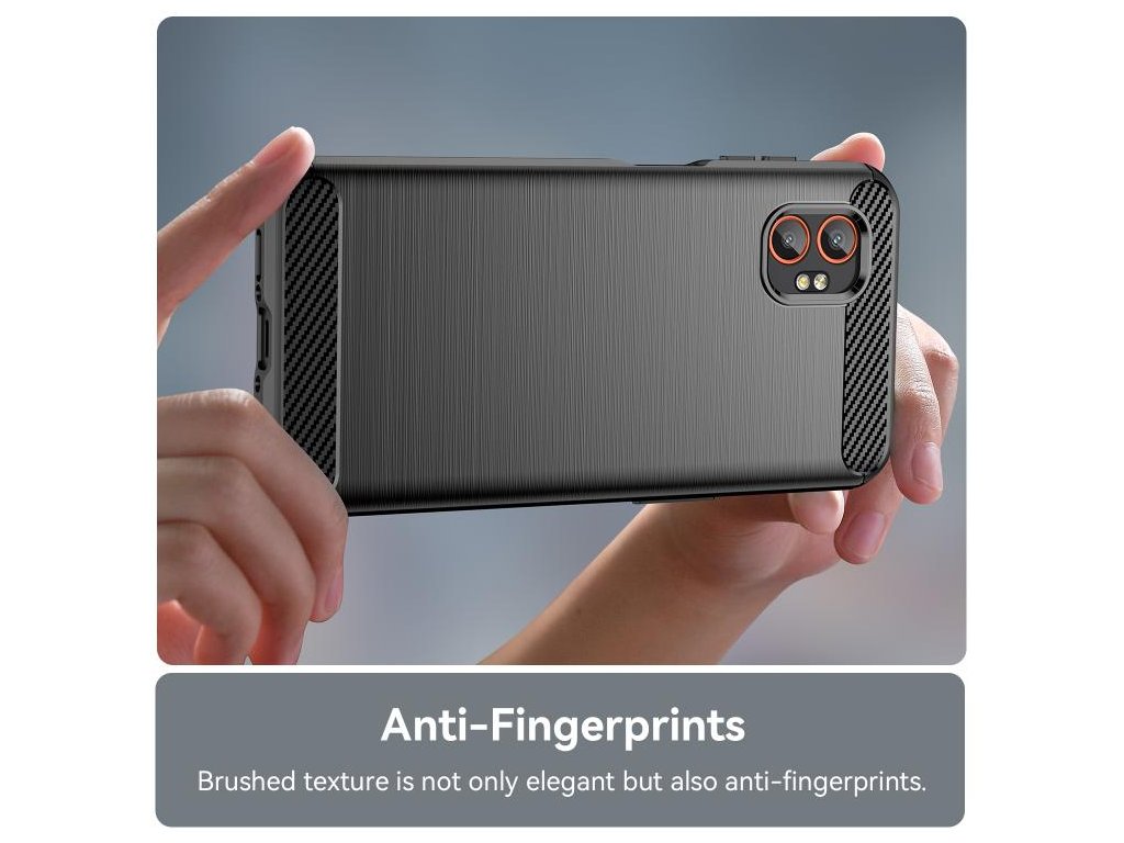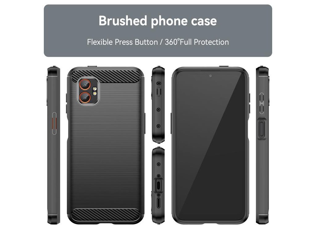 Zvýšte ochranu svojho telefónu Samsung Galaxy Xcover 7 Pro s puzdrom Carbon Fiber Brushed Texture TPU v čiernej farbe.