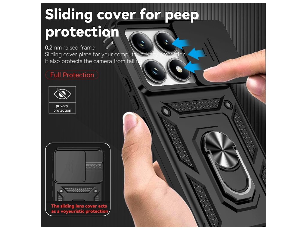 Chráňte svoj Xiaomi 14T Pro štýlovo a efektívne s týmto čiernym ochranným krytom, ktorý spája funkčnosť, ochranu a súkromie. Vďaka zasúvacej krytke na kameru máte istotu, že váš fotoaparát je chránený pred poškodením aj neautorizovaným sledovaním.