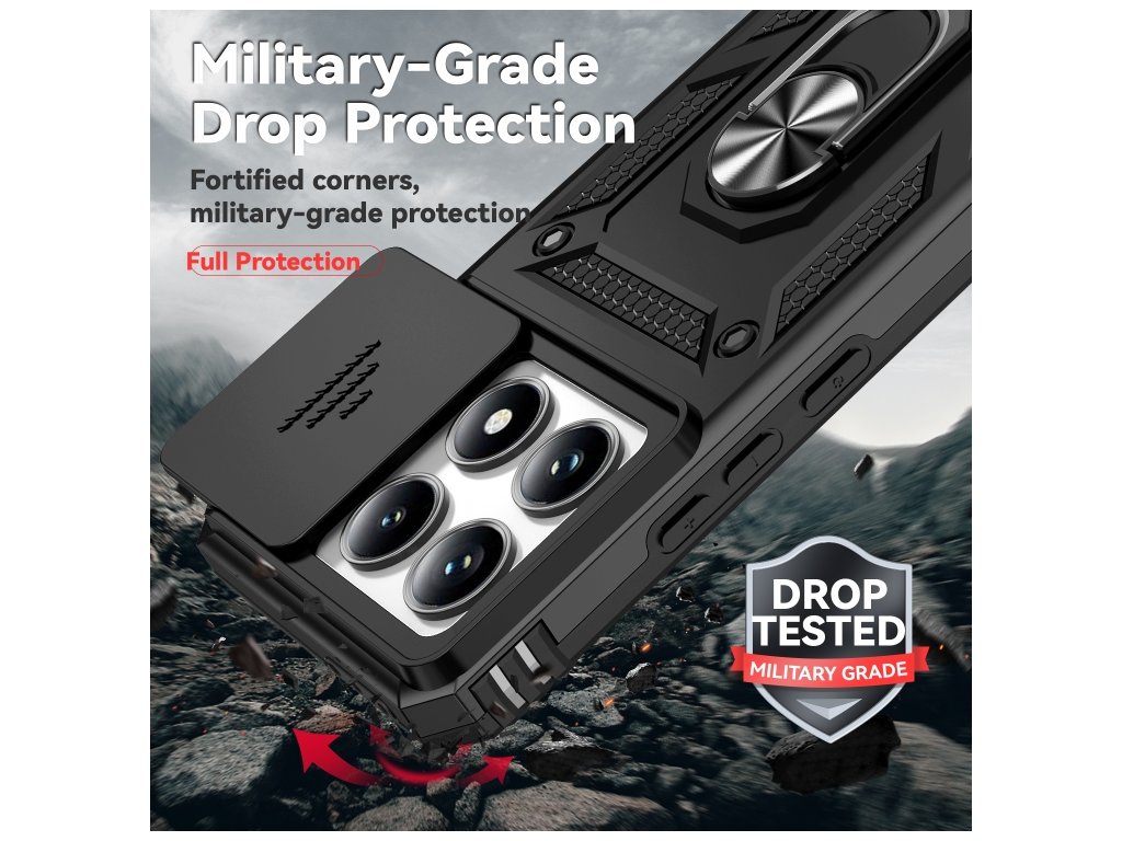 Kryt so zasúvacou krytkou kamery a stojanom pre Xiaomi 14T Pro – čierny