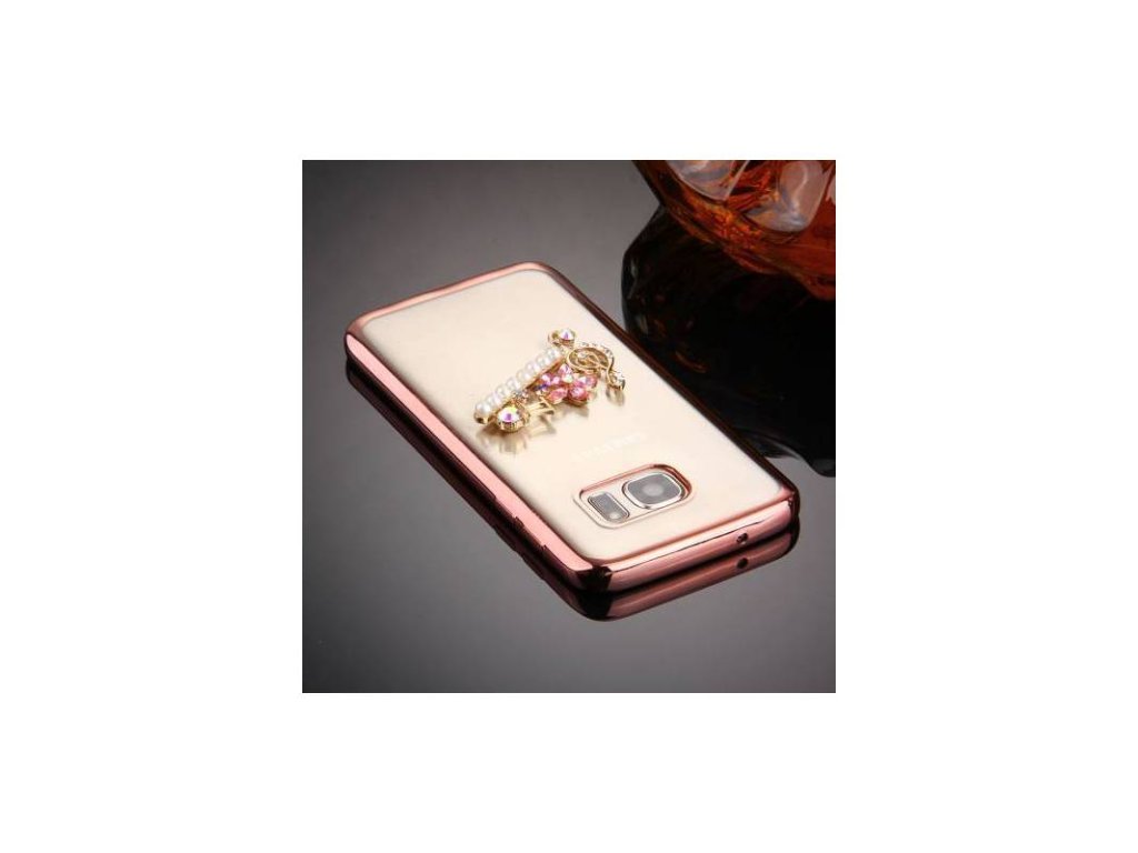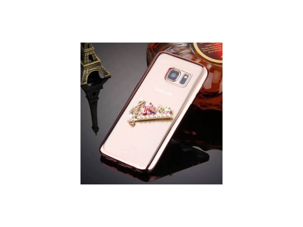 Luxusné puzdro Samsung Galaxy S7 s kamienkami priesvitné so zlatoružovým rámikom motív Noty