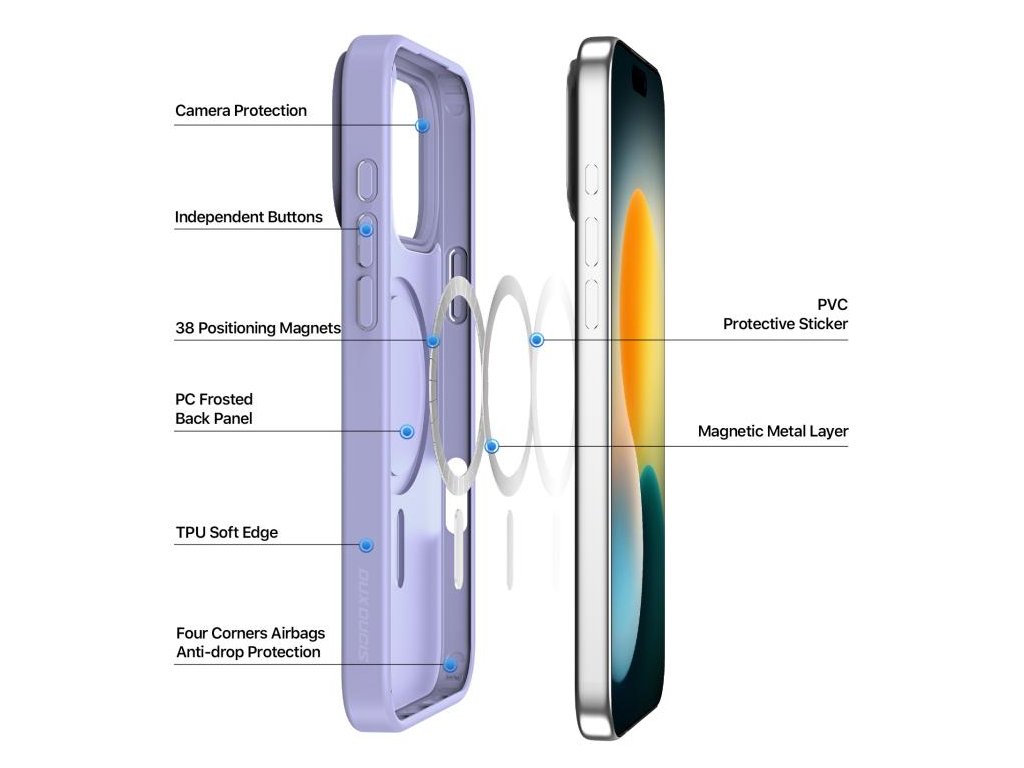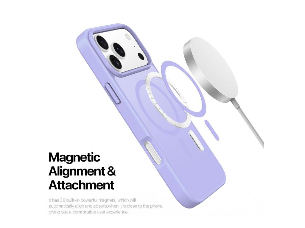 Fialové jemné prevedenie s presnými výrezmi umožňuje bezproblémové používanie všetkých funkcií a pohodlné magnetické pripojenie príslušenstva.