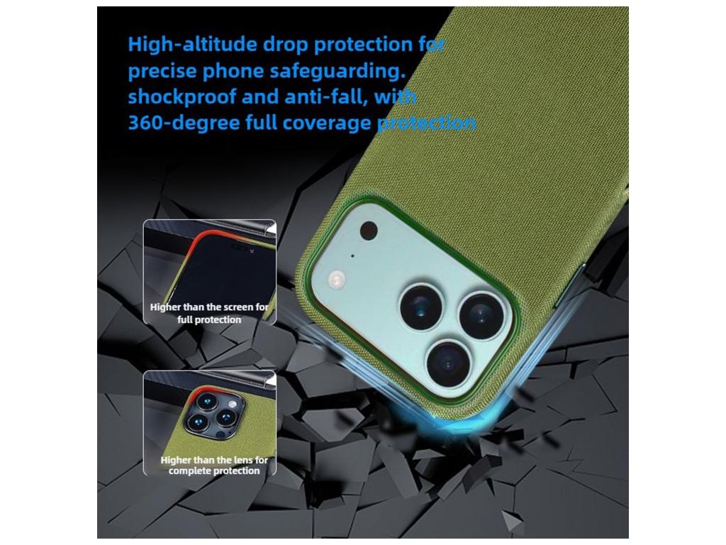 Chráňte svoj telefón iPhone 17 Pro štýlovo s Kalebol Fabric-Textured Perforated MagSafe PC Phone Case (Blue).